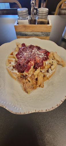 Tucked back and hidden but it’s a cool place, very friendly staff, worth the stop in. Fresh baked goods and a pretty extensive food menu. The doughnuts and cinnamon roll were very good. Will have to go back and try some of their menu items.