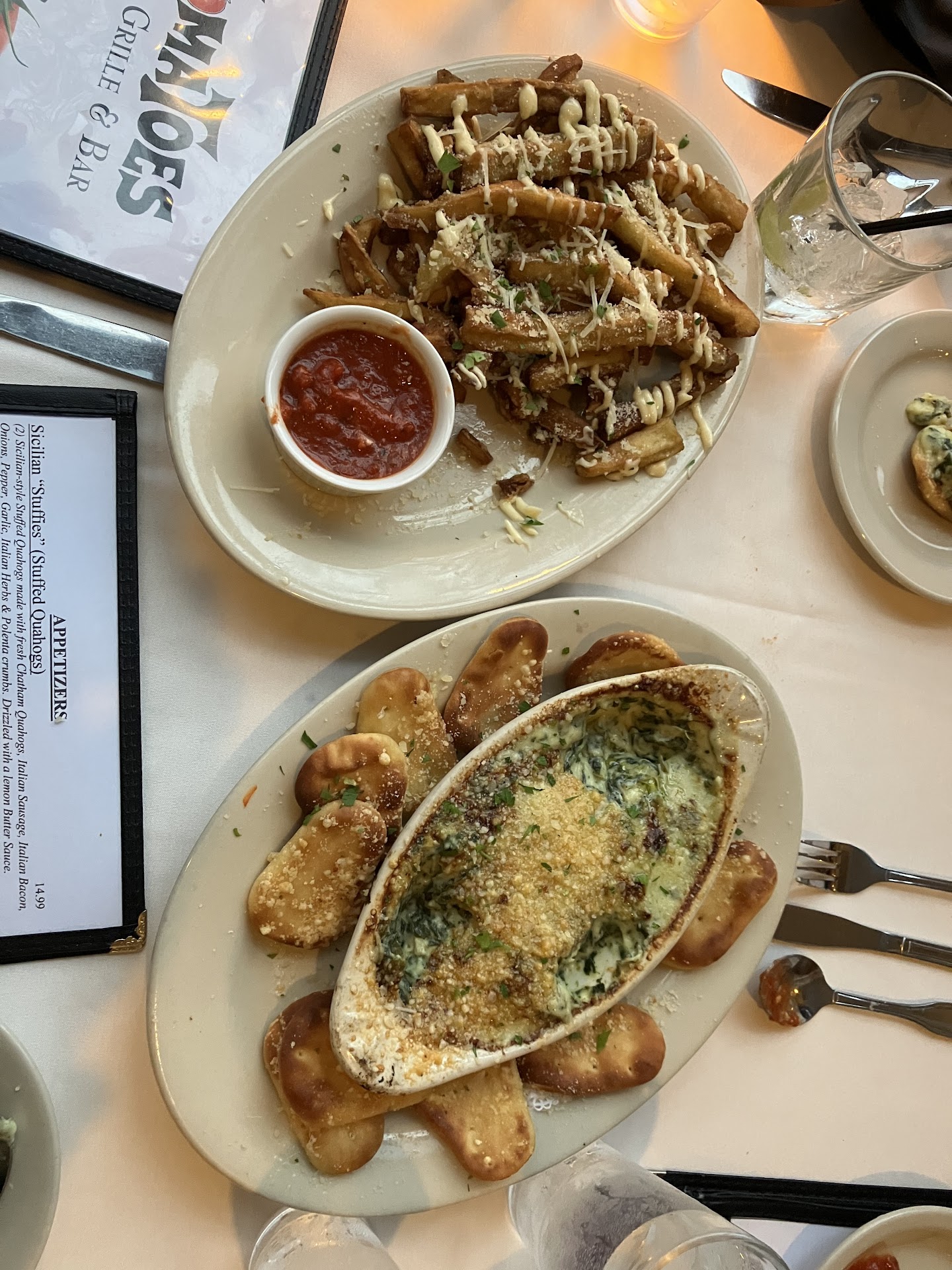 Read moreThis is the third time I have been to Tomatoes over the past several years. If I had reviewed in the past I would have rated the food 3-4 stars. Last evening the food for the entire table of 7 gets a 2-3 star rating. The beet salad was made with iceberg lettuce? Have never seen that in all my dining experience. I ordered the Chicken Rolatine. I asked for the penne to have the same sauce as the chicken ( menu said porcini mushroom garlic cream sauce). It was served with a sauce that looked and tasted like a beef gravy and the pasta had tomato sauce on it and all on the same plate!! The outside of chicken was so well done that I had to scrape the chicken out of the stringy overdone outside layer. Other diners in our group were not jazzed with the bland risotto or the Marco Polo. I will say the asparagus was great and our desserts were good. The 1 star rating I gave is for service......Our waitress was very personable but extremely forgetful. We waited excessively long for one persons wine, cream for a second cup of coffee and other items. The birthday girl got a particular chicken and cheese bake (reason we went to Tomatoes). The serving is huge as she knew and she normally takes half home. Last night she ate 1/3 and asked to have a doggy bag. The waitress insisted she had to bring the two meals out to the back and wrap there. After 30 minutes someone asked where is the food. We waited another 15 min and she said they are wrapping it. Finally she came over apologized and explained it was all thrown out. She would take a meal and a half off the bill. Needless to say the Bday girl was extremely disappointed because now the kitchen has closed. She told the waitress to get the manager. The supposed manager came to the table and thought it was ok to snap at our friend and interrupt etc. she raised her voice and said” what do you want me to do I’m giving you a credit” and stormed off after making a ridiculous scene to the other patrons as well as us. I then asked to speak to the owner and she said “ she is the owner”. Wow wow wow!! We were all appalled as were other patrons. I have never experienced such unprofessionalism at a dining establishment. I own a business and the customer even if wrong should be treated with respect. There was none here. I would think the owner would have apologized for the mistake (stuff happens). Maybe said come on back and here is a voucher for that dish etc. This was not about the money it was about the way they handled it. I won’t be back and I won’t be referring others either. Too bad for the wait staff they don’t deserve to work for an incompetent owner. I do here her husband is very reasonable and he would not have reacted...