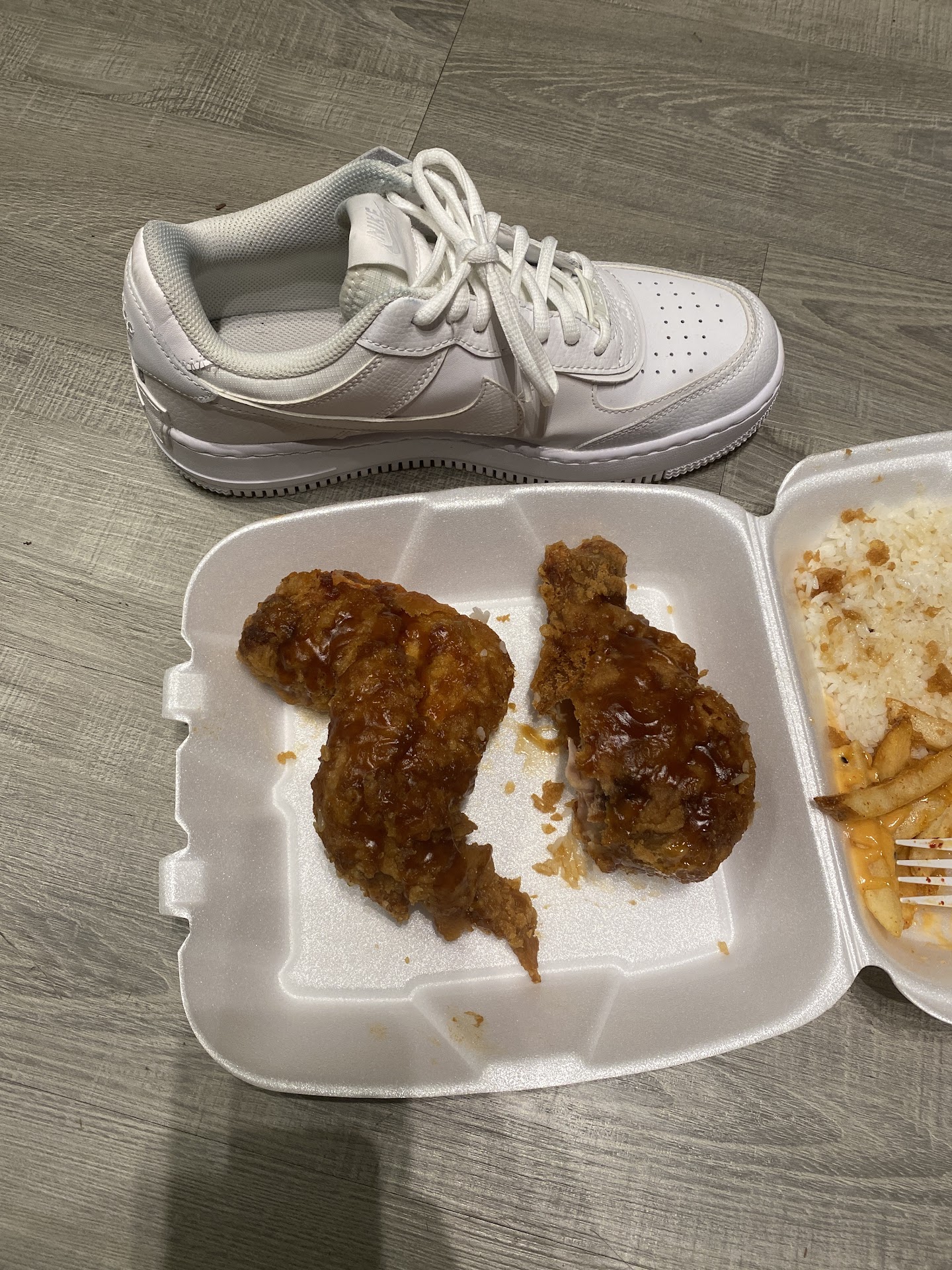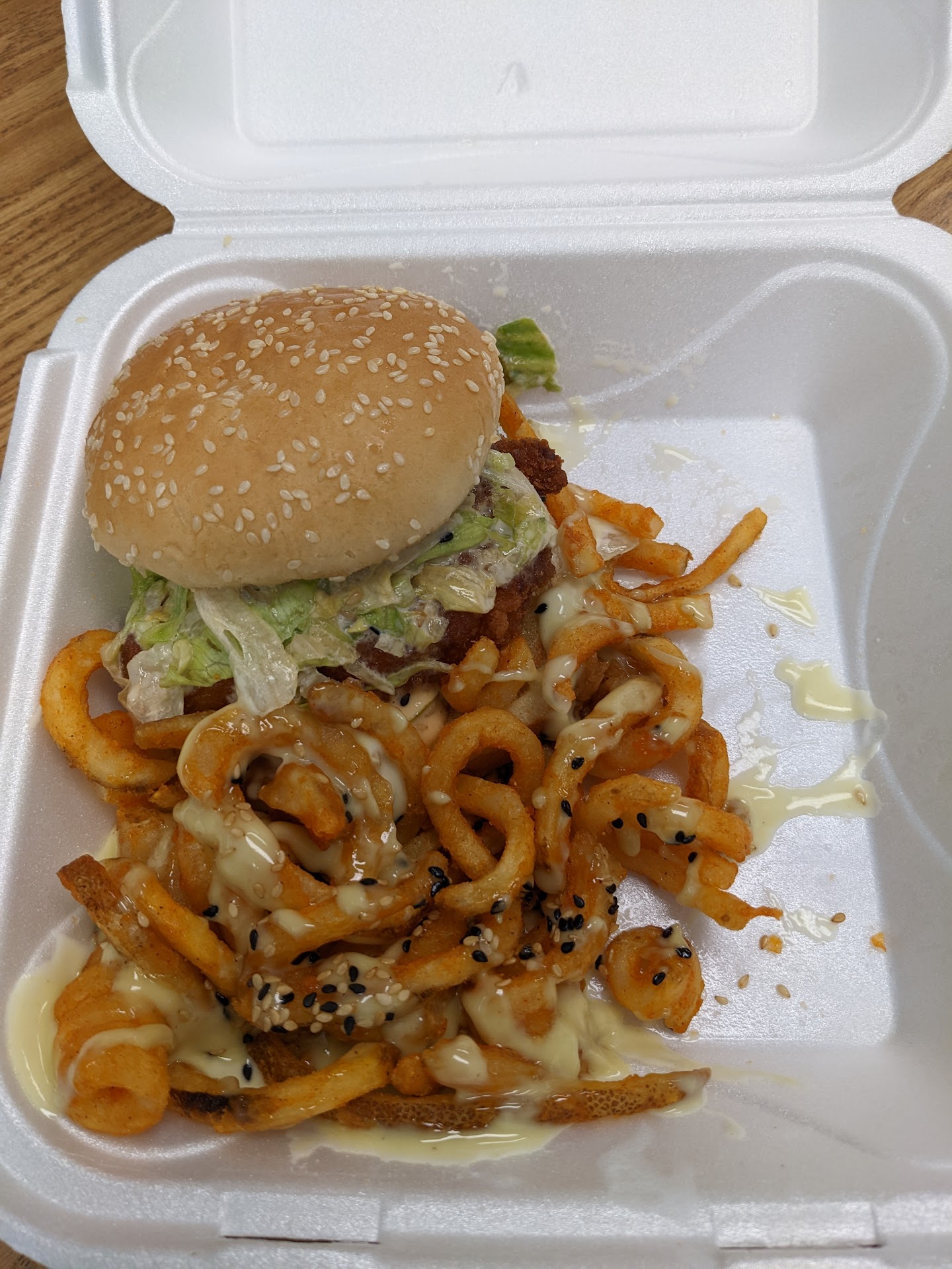 Negative Long-ish wait time (for food to be ready). Don't come here if you are already very hungry and wanting their fried chicken! We ordered fried chicken, was told the wait time would be 30 minutes. The good thing was the food was ready at the quoted time and it was hot! The chicken was very bland. It did come with sauce. But the chicken and the breading didn't have any taste. Usually most places would have chicken/breading with some flavor already, but not this place. This was a major disappointment. The owner (assuming the person who was taking order and preparing our food was the owner) wasn't very friendly. It was rude either, but definitely could use some improvements here. The paper-based container used for the combo dish, the rice would stick on it badly. It's nice if the business wants to support environmental product and use paper-based container, but for rice dish, that's not the ideal choice.