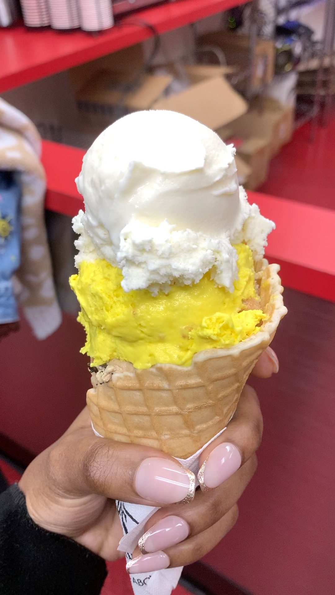 The staff seemed completely disorganized. They made six cones that no one even ordered, and instead of salvaging or offering them, they dumped the ice cream back into the bins and threw away the cones. It felt chaotic, with no clear system in place and no urgency to move the line along.