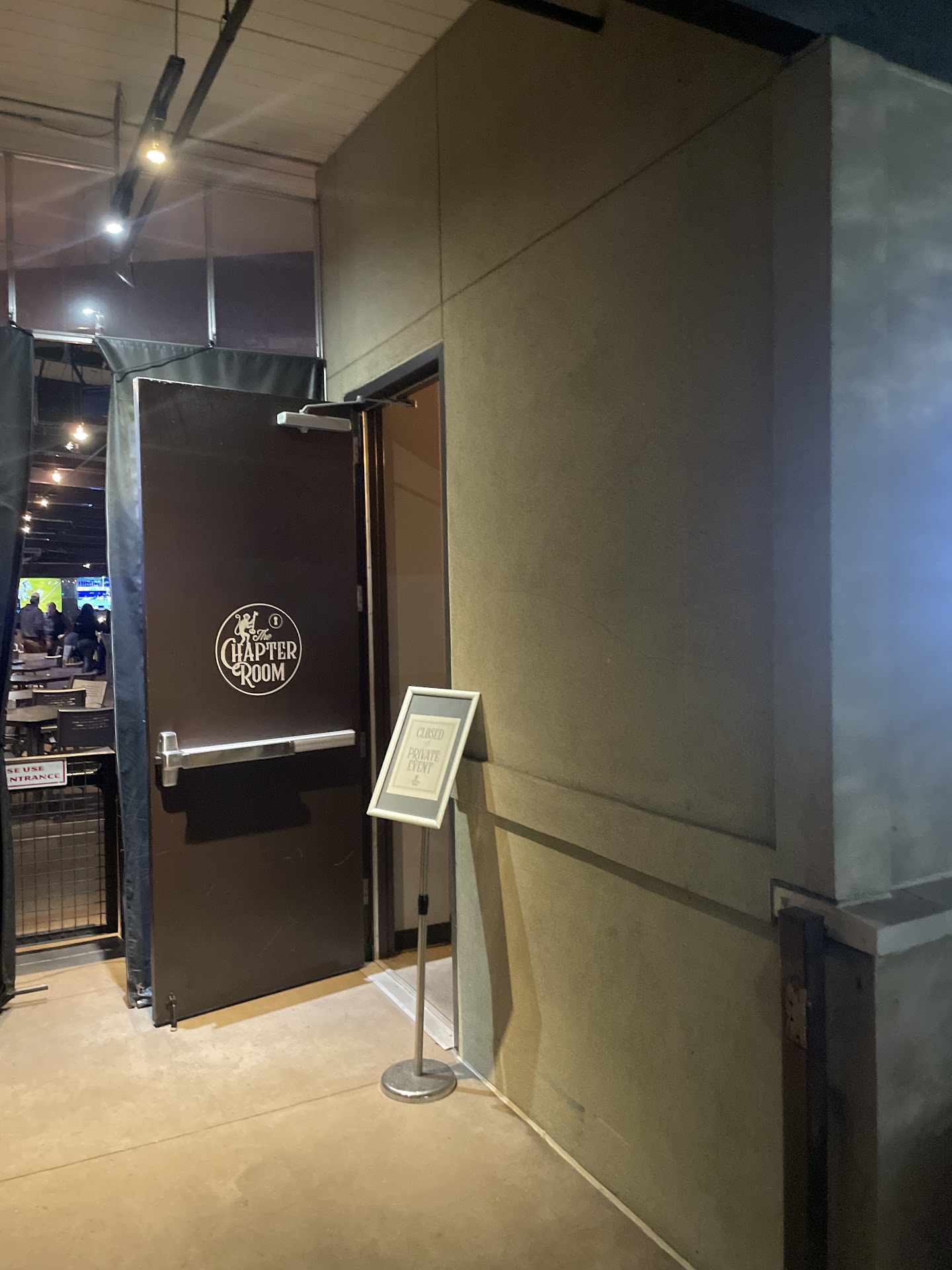 The Chapter Room reminds me of that scene in Titanic where the men go off to this room to discuss being Masters of the Universe. All dark coverings and a very masculine feel. There are no windows, but keeping in line with the speakeasy feel, that makes perfect sense. The only thing to take me away from my vision were TV's with sports playing on them.
