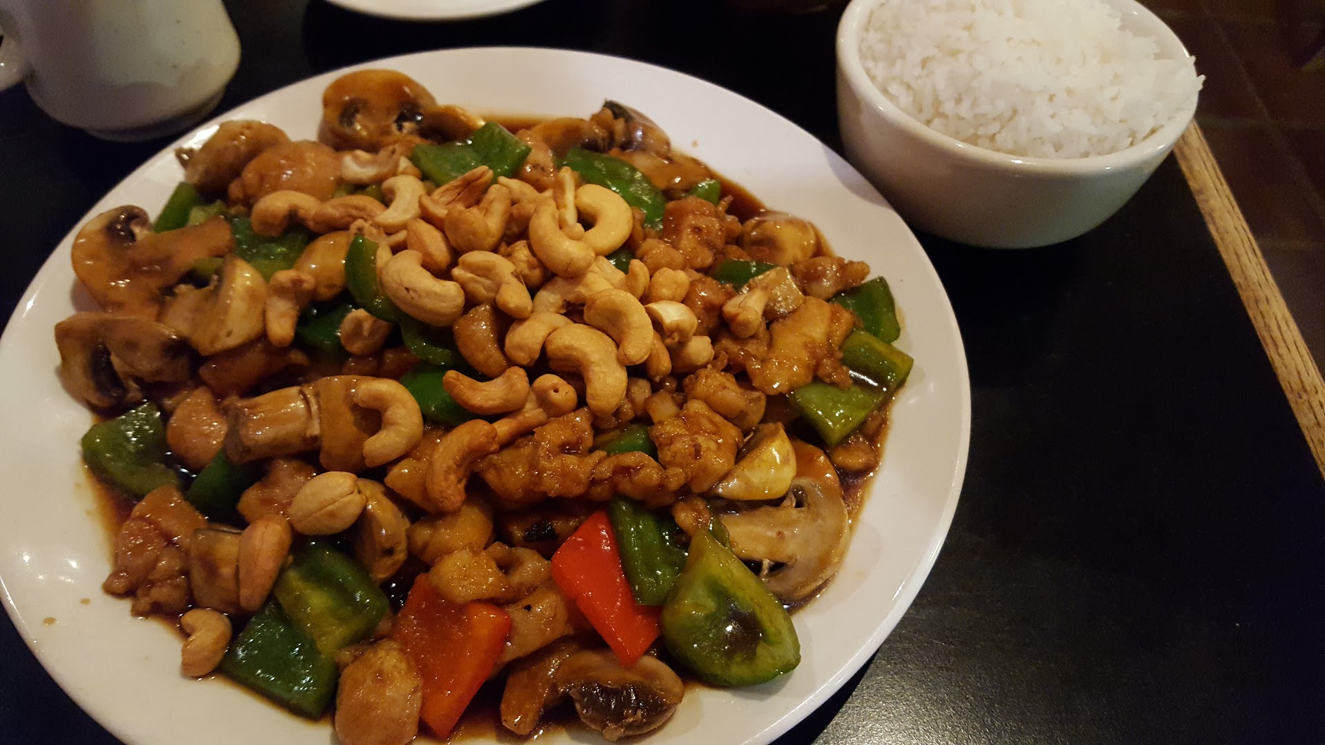 Ordered Chicken Cashew with white rice, hot & sour soup, hot tea & water.