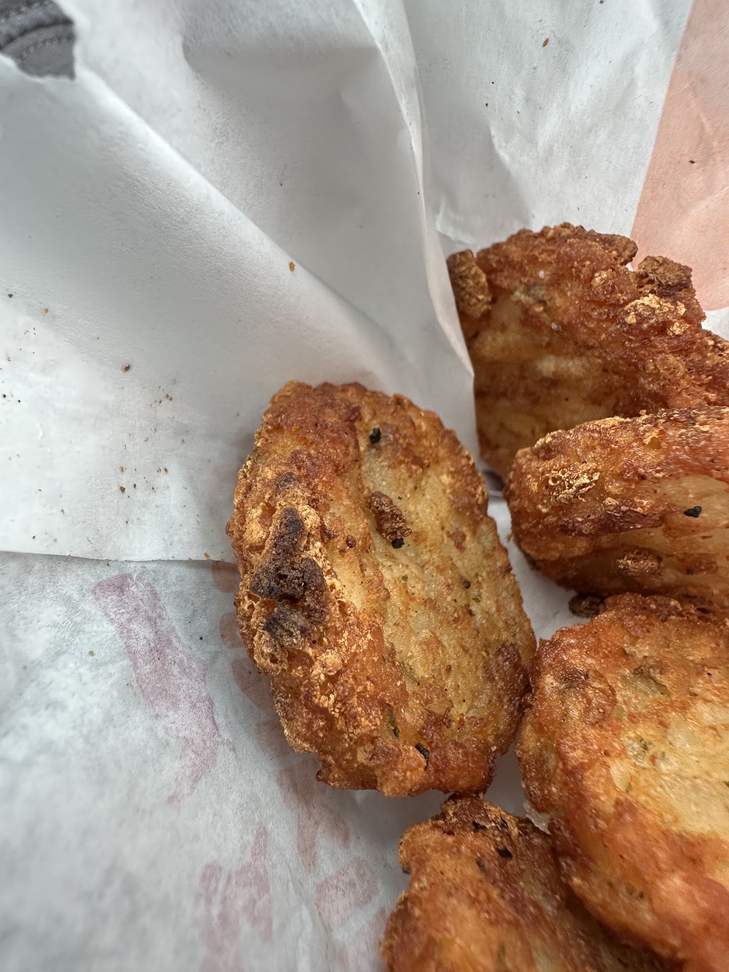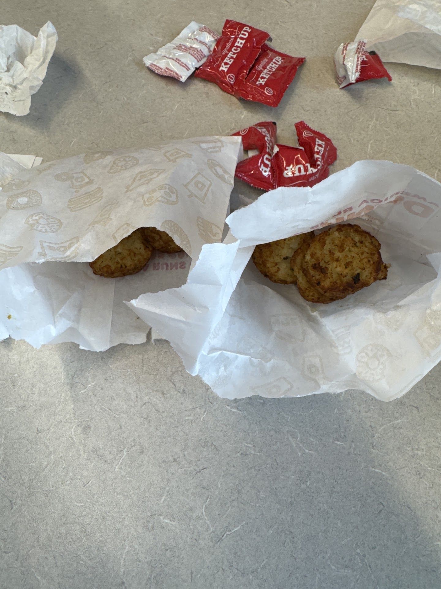 Read moreThis is one of those reviews where I felt it necessary to help prevent others from the same experience we had. Ordered a few donuts and 2 breakfast meals. 20 min wait in the lobby and staff was standing around eating, we didn’t have our sandwiches and hash browns. I politely asked. They said they would get it for us. 20 minutes later, staff is standing around again. 40 min total, still didn’t have our food. I asked again and staff was rude about it. They offered 2 free donuts, for consolation. Then they bring the sandwiches and not the hash browns. I approach the counter for a 4th time and get attitude again. She gives me old, mushy hashbrowns, and 6 of them, picture included. I ask if I can have ketchup and a knife and she barks to someone else to get them. I’m usually pretty easy going and patient, having worked 7 years in fast food. 40 min, 4 requests and poor quality food was enough to hopefully help others...