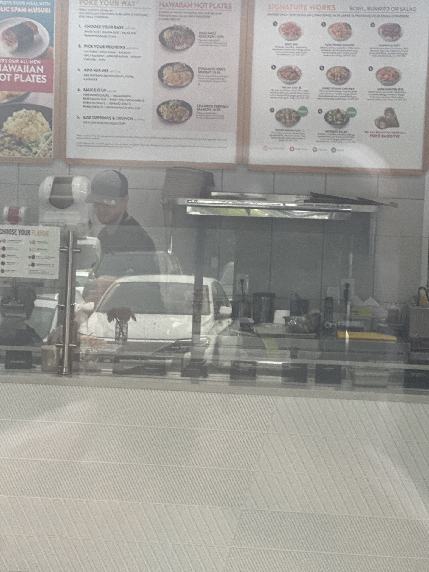 Read moreCute little new place and decent food, but it needs a little work. The two servers were friendly and doing their best, but they often had to reach across each other or wait for one to move to access ingredients, which slowed service down. Inside was warmer than was totally comfortable and made me a little nervous that the raw fish wouldn't be kept cold enough, though it was fine. I got a salmon bowl which was delicious, and all the toppings seemed fresh. The sauce I got was spicier than I expected, so it would have been helpful to have an indicator next to the sauce names for spiciness.