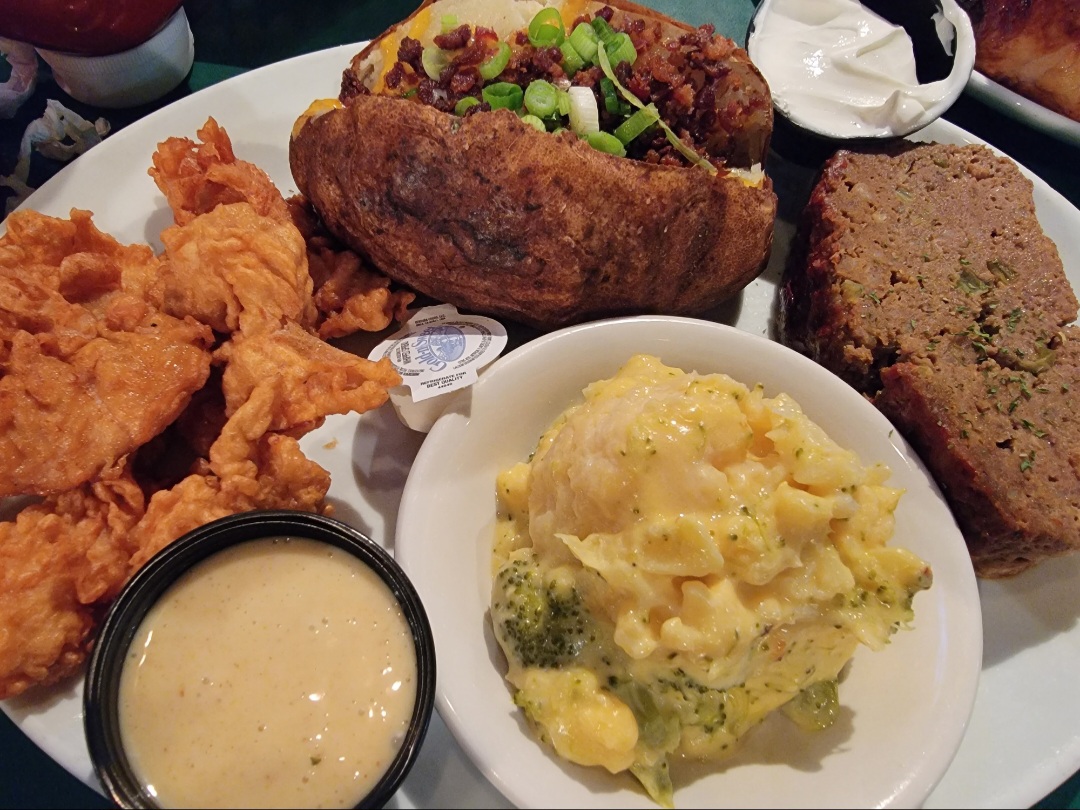 Read moreWent in Thursday evening on 6/19/25 with my husband. Our waitress was distant engagement-wise and we never even got her name. Ordered an appetizer and halfway through it, she comes back and says “are you going to order anymore food or is that it?” This made my husband immediately turned off by the experience although he did not show it towards the waitress. She assumed the small appetizer was our dinner, but why? Was it because we looked “different” from the rest of the patrons there and she has ignorant, prejudiced views? I could be wrong but what else could it have been? I noticed she gave much more attention to her other tables. We ordered our meals and I wasn’t given ranch like I ordered. My husband waved her down as she walked by and asked for ranch. She says ok and as I look up I see her roll her eyes as she walks away. The food was bland, the collard greens come from a can. My meatloaf was mushy, watery, and undercooked. The chicken tasted like it didn’t have one speck of seasoning. I doused my food with hot pepper sauce and Texas Pete so I could taste something. We will never go back and I’ll tell others...