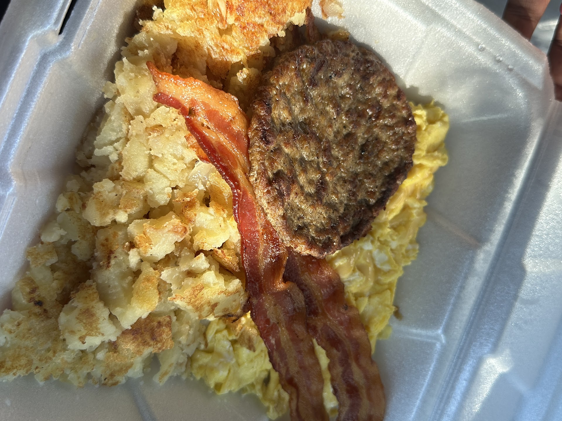 The homefries had onions in them, and I'm allergic to onions. I have never encountered onions in homefries before and it didn't say anything on the menu about them having onions so I ordered them thinking it'd be a safe bet. I'm lucky I saw that they were loaded with onions before eating them. It wouldn't have killed me, and allergies to onions are rare, but still. I guess I just wish something so uncommon as onions in homefries could have been outlined on the menu. All the other food was good; I wish I could have at least finished it. I couldn't eat because I was so uncomfortable being stared at.