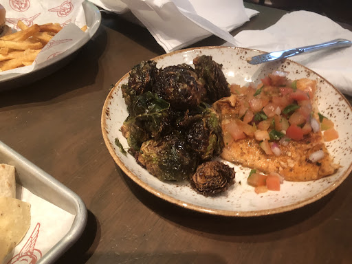 So it took about 15 minutes to get a waitress (which is normal) but she got my drink totally wrong and when I tried to correct it she still repeated it wrong. I had to yell it at her over the noise. Then got appetizers and it was 45 mins later before we got to order and even had to hunt her down just to order. The reason is she never stopped by once to check on us when she would come outside to take drinks and beer to others. It was taking longer than expected so we hunted her down again and asked about our food. She said she would check and see if we had any in front of us. Once we got it I had the beef tacos. I have had better at Taco Bell! I had grease pouring down my hand, my husband's fish and chips were so crispy it was impossible to eat! The cilantro rice was dry and tasteless. So by now it's been already a crappy experience (the table was so loud they drowned out the TVs), we were tired and has two hours to drive home. When we were able to grab her again, asked for boxes. She took off so fast we didn't get to ask her for a ticket. She brought the boxes back and we asked for the ticket, she asked if we needed a box. So out of frustration my son in law paid for it not wanting to wait to fix it.