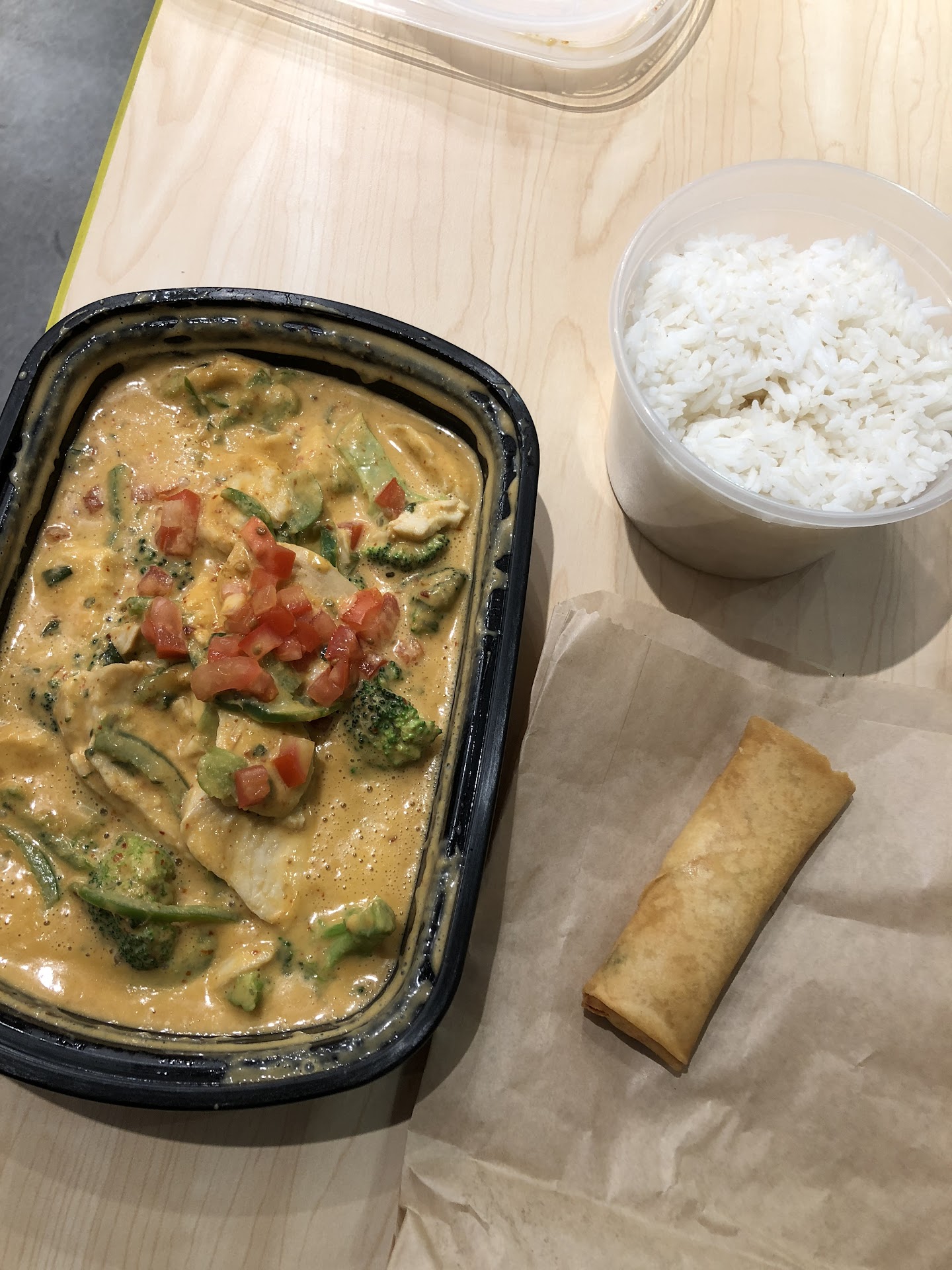 I had ordered Penang curry with steamed rice (spice level 3/3) along with one crab and cheese spring roll. Food arrived in less than 7 minutes which was a surprise! Best part? Their portion size is HUGE! One is good for two people or two meals! The curry had all the ingredients perfectly and unlike other places, I could taste the coconut milk!! Spring roll was great too for its value! I WAS SO HAPPY!!!
