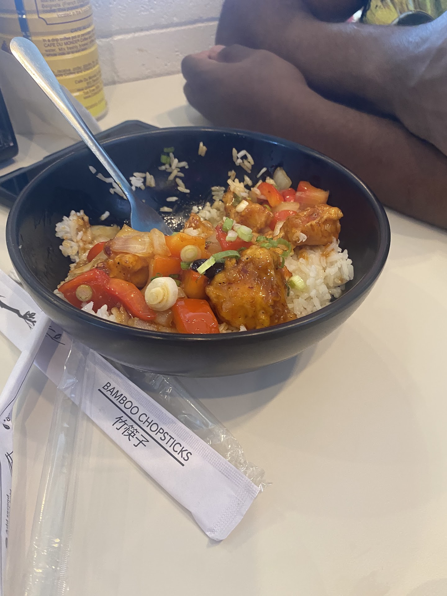 Read moreI always stick to what I am familiar with and should've stuck to this motto with this location. I always go to the Akers Mill location. There is DEFINITELY a difference in the cooks and also the staff. I assumed the food would taste the same since it's a chain restaurant but I couldn't have been more wrong. At the Akers Mill location the food is made fresh and surely tastes like it. The food here tastes pre-made waiting for customers to arrive; the fried chicken is cold, wet and soggy, veggies soggy too. I'm just glad I didn't bring anyone to THIS location to introduce them to TinDrum. I talk about the food so much but it's the Akers Mill location that I need to be very specific about suggesting if I do tell anyone about it. Waste of money because I'm still hungry. Our bowls are full and barely touched. Another great thing about the Akers Mill location, the staff and manager actually come and ask if you're satisfied with the food quality which my answer the is always yes. These people here must've known better than to come ask us because we don't have good...