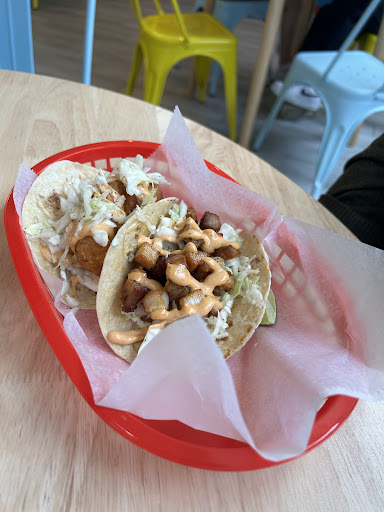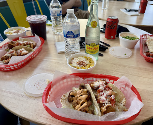 This taco spot was such a great find! You order at the counter, and the food comes out quickly, fresh, and full of flavor. I tried the fried oyster taco and the pork belly taco — both were incredible. The Mexican street corn was off the cob (which I love because you can enjoy all the flavor without the mess or getting corn stuck in your teeth!).