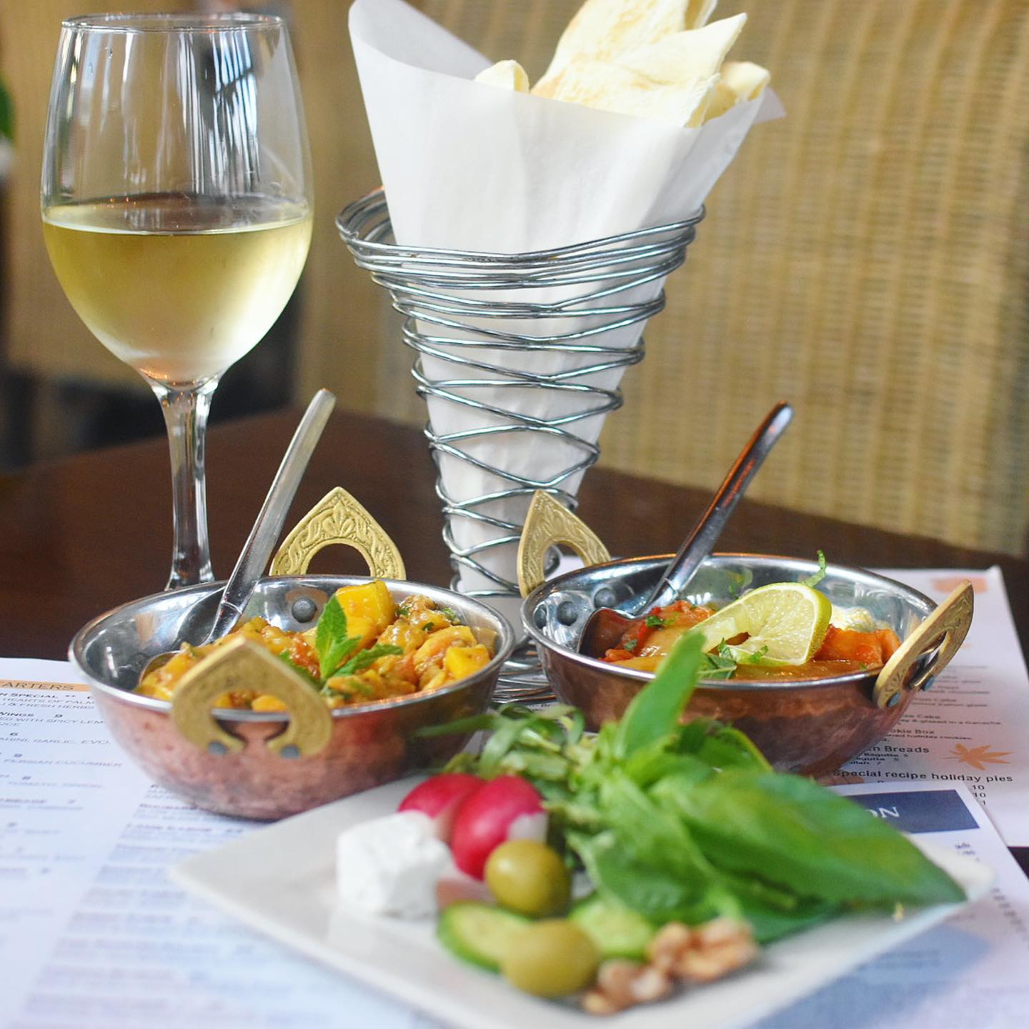 From the moment you walk in and see the lavish and gorgeous garden room adorned with a chandelier and notice the dynamic food, Zafron Restaurant turns out to be a true Persian gem in Sandy Springs that has style. From dips and starters for every taste, an extensive wine list, to tender sea bass, and the fantastic and unique experience of the Rhubarb Lamb Shank, we sipped and tasted our way around the menu. We can’t wait to share our experience any longer, let’s dive in.