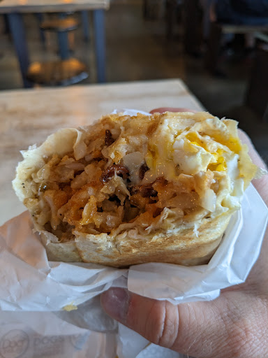I've Doordashed about 7 or 8 of these burritos over the last year. I've branched out and tried a few of their options, but the one I always fall back on is the "Worth the Hangover" burrito. Breakfast burritos are easy to make, but difficult to master. It's very good, but there is one thing keeping it from being the best breakfast burrito in Utah: egg preparation. They medium-boil their eggs, and while it doesn't sound like a bad concept as someone who loves soft/runny eggs, the flavor and texture feels a bit off to me. It's like they cracked one day's worth of eggs into a giant bowl and steamed it with hot dog water until solid. Then they carve out a hunk and slap it on the burrito without adding any seasoning. Whenever I take a bite and get mostly egg, it's difficult to force down. The rest of the burrito is amazing, but I usually scrape out the malformed chunks of boiled egg when it all gets packed into one section of the burrito. If only they soft-scrambled their eggs in salted butter, this alone would elevate this burrito to a 10/10. But I understand that might not work when preparing hundreds per day out of a kitchen shared with another restaurant. Thanks for...