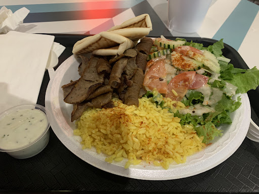 Don't order here unless you have all day to waste and plan on going hungry. We went to the mall to kill an hour, get some lunch and play some games. My wife got pizza but I wanted a Gyro, big mistake. Even though I ordered first, I got to watch my wife eat her pizza while I waited. 45 minutes later I finally got my food, but when I got it it was wrong. I ordered a plain Gyro, but it was covered in that nasty cucumber sauce. Since we had already wasted all the time we had waiting for it in the first place I sent my wife back with it to get a refund while I went and got a piece of pizza. Rather than providing a refund he argued with my wife that that was what I ordered. She told him that she had seen me order my Gyro that way hundreds of times, that he did it wrong, but that I had already gone to get something else because we can't wait another 45 minutes for a replacement. The guy just took the food from her, threw it away, and walked away. So as we sat there and I hurried down the pizza right as I was finishing, the guys assistant comes walking up with another Gyro. I told him no thanks, I've already eaten. I am half tempted to call my credit card company and dispute the charge, but that is a lot of drama for $20. Oh yeah, their Baklava sucked as well. So basically I got the worlds most expensive small Sprite for 20 bucks. What a joke, they ruined our afternoon. Never eating...