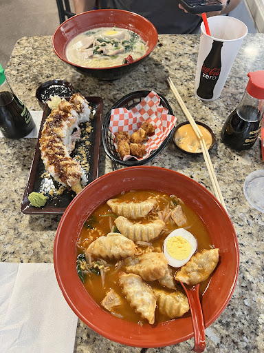 We stopped by on a weeknight and ordered a few rolls and the Tonkotsu ramen. The Ramen is pretty underwhelming. The best way I can describe it is a fast food Ramen. Broth mostly flavorless. For the meat they threw in a pork chop that was pretty dry, and instead of seaweed, the ramen had spinach leaves. The noodles were the best part and they were just ok. If you're planning on Ramen literally go anywhere else.