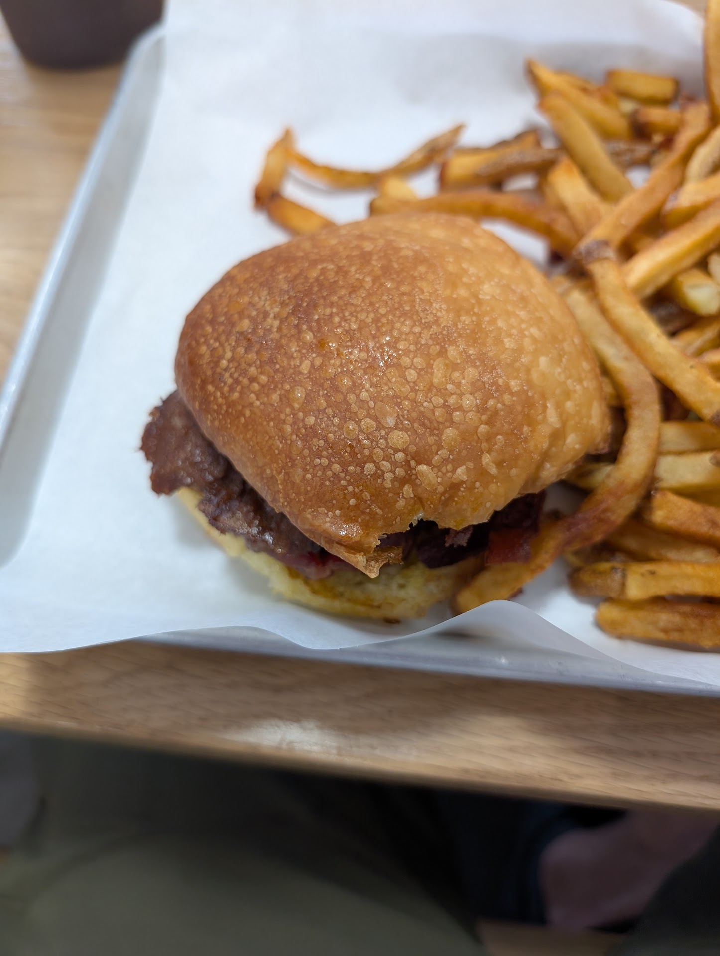 Read moreI ordered the Cheddar Bacon BBQ Burger, with Personal Hand-Cut Fries and a Reese's PB Cups Shake. The burger is good, but I would get something different like the MDC. The fries are really good - could use a little more salt, but that's personal preference. The shake was good, but the Reese's glob at the bottom so I'd try the Oreo or something else.
