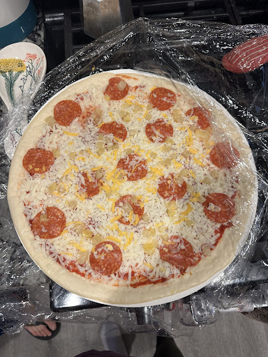 I highly recommend upgrading to a family size pizza because you get a lot more pizza for a little amount of money. I also suggest getting the Chicken Bacon Stuffed pizza but switch out the onions for pineapple. It is simply delicious.