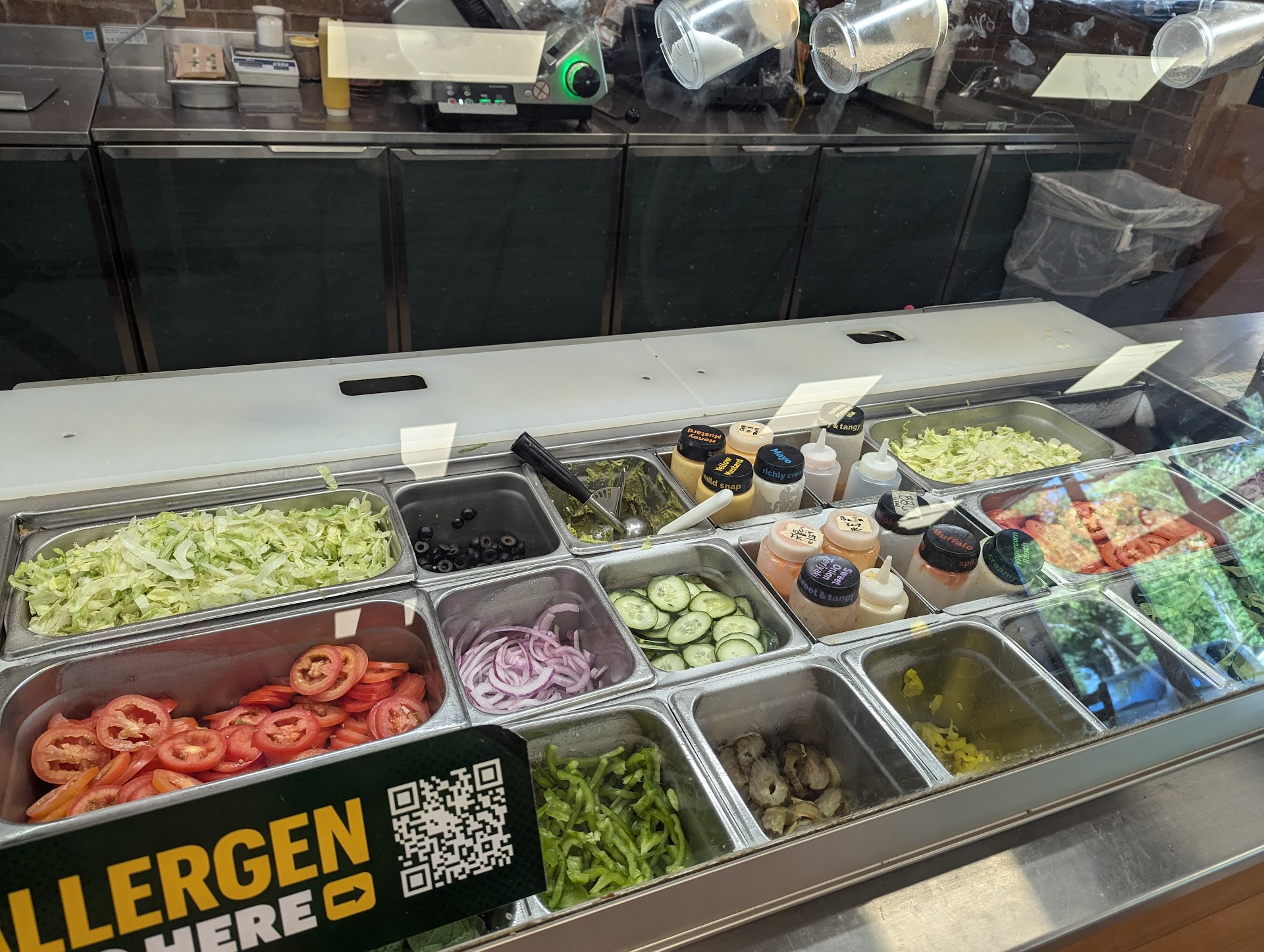 She then proceeded to make my normal sandwich, and while it was toasting she asked what veggies I wanted. I told her I wanted light lettuce, onions, jalapenos, and banana peppers, and instead of waiting for the sandwich to come out, she took a handful of lettuce and spread it out directly on the prep surface, followed by the rest of my veggies.