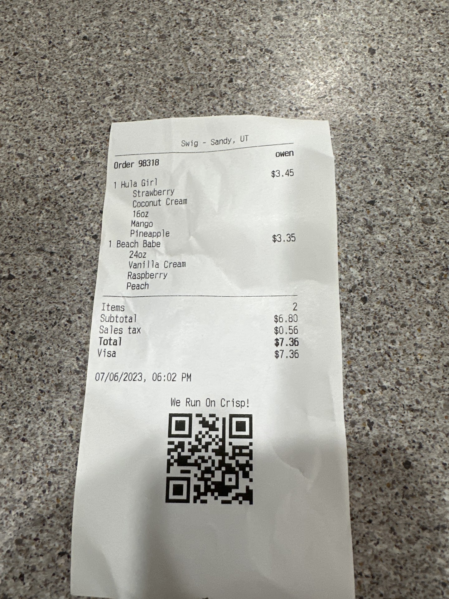 Swig is one of my favorite favorite soda shops in Utah! Iām not one to really write reviews or complain, but I feel like everytime I go to this location I am disappointed in the service. Iāve been in the drive through, where there is only 1 or 2 cars ahead and I have had to wait 15-20 minutes. I have also gone inside and had long wait times. One time when I was in the drive through, I pulled up to the window and noticed 2 of the workers just chatting and I could see my drinks on the counter and I had to sit and wait for them to finish chatting before they even realized I was there. My drink was also looked like it had been spilled when they handed it to me. I also have noticed sometimes the drinks are flat which is a bummer. I went in today, and it was a little busier so I understand why the wait times were longer. However there were 4 employees, and only 2 making drinks. I felt like the other 2 who were unboxing in the back could have easily stepped in to help, but instead we all had to wait. I have tried to be patient, because I understand they are young, but I feel like something should change when everytime I go I leave frustrated or disappointed. At other locations, employees are so friendly, quick, and efficient. Here, I donāt feel like they take the time to be friendly and welcoming to customers, and there is no sense of efficiency. I was at the Lehi location recently, and the drive through line was crazy long. I was so amazed when I was in and out with my drink in less than 10 minutes. I donāt say all of this to just be negative and high maintenance, I have just noticed a big difference in this location compared to others and it honestly makes me sad! Not sure if this is a management issue, but I hope to see...