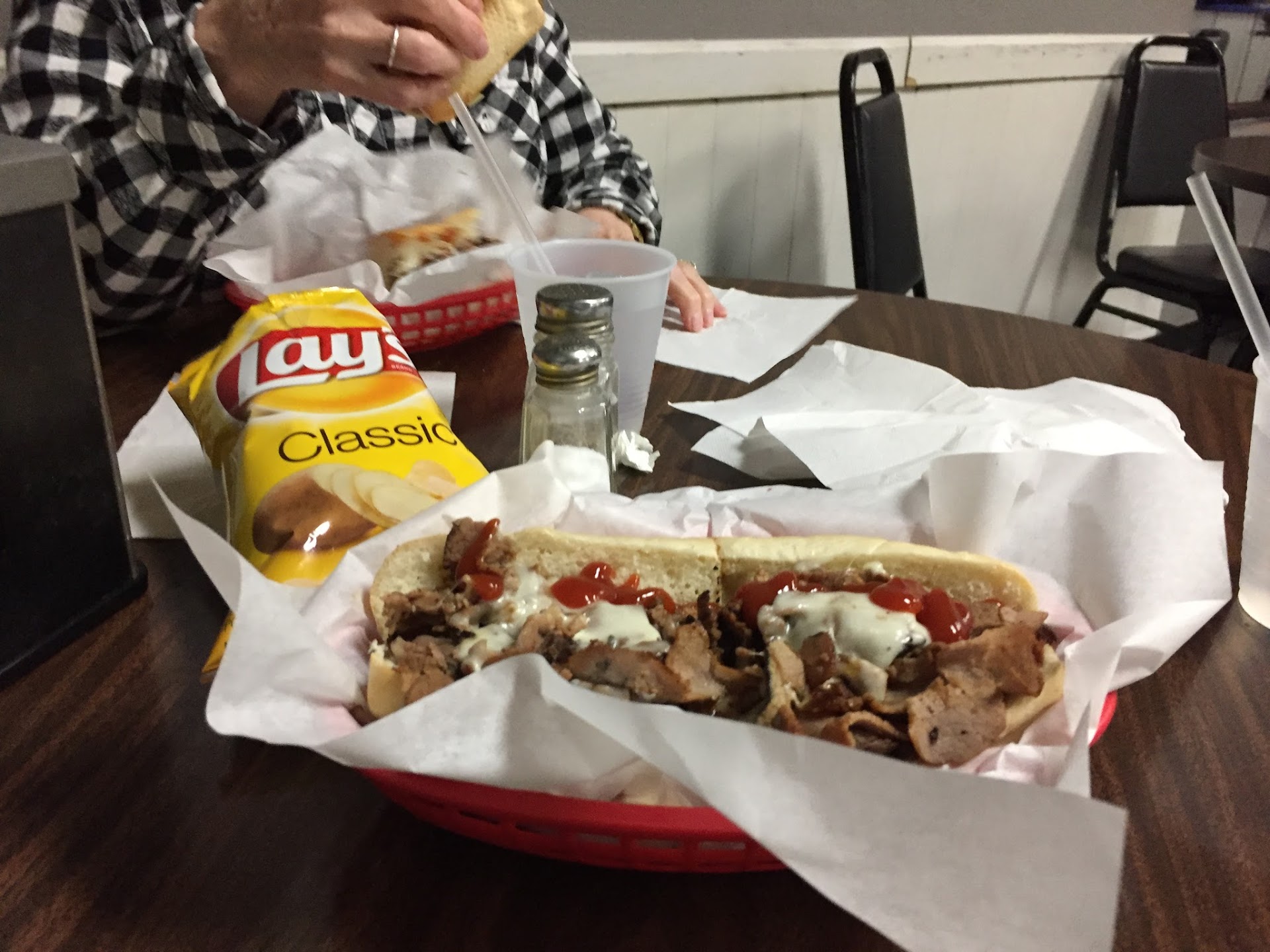 Read moreBased on online ratings - My wife and I went there the day after the Eagles victory in the BS52. Disappointed that they didn't have a single hint of the Philly sports environment. That was telling for a place calling them self the Philadelphian. Note, we just moved to Utah from the Philly area - expert and credible. So we ordered cheese steaks, as was our intent. Ordered with fried onions - got fresh onions. Other options for a cheese steak were definitely Utah themed adds. Didn't have sweet peppers or a 'special sauce'. Mayo - lettuce - tomato -are not typical choices at a Cheese Steak eatery in the Philly area. Had 'fry sauce'... not for my tastes. The roll was OK - not Amoroso. Cheese was provolone - not white american (didn't see a cheese whiz option . - but that was OK) The portions were very good for the $$ spent. Plenty of meat. The steak was medium thickness but tough - a sign that it wasn't turned enough in the cooking process - of a skilled cook. Also the meat was extremely salty. To the point where we couldn't and didn't want to finish what we had. Summary - better than other Utah want a be's - but for a place claiming they have been there since 1988 - they are definitely attracting an un-schooled Utah crowd. Best of luck - we...