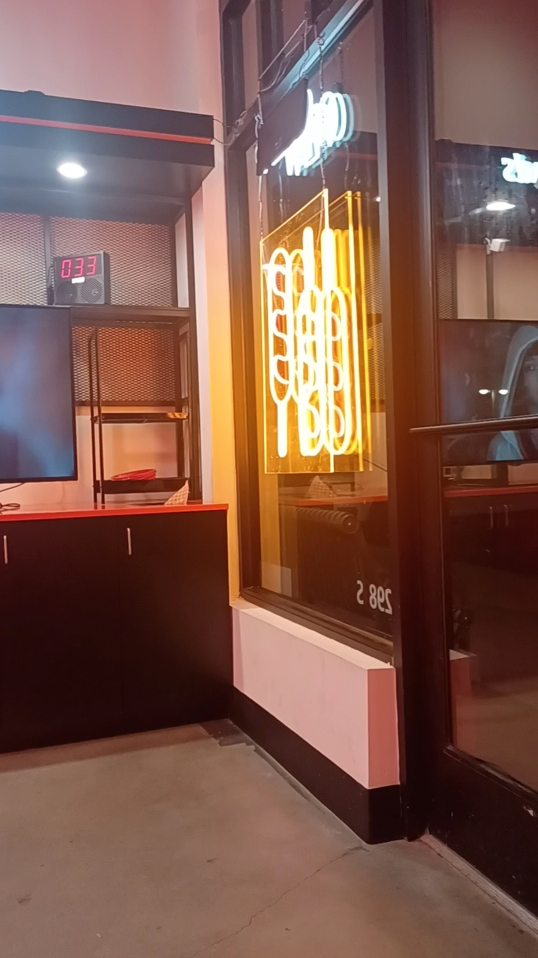 We were having a craving for a nice korean dog. We came to 2 hands soul, Korean dog.We thought it was a restaurant. We almost left until we saw that they had tables. Yay! We ordered the three pack dog That came with two drinks and an order Of the dirty fries. We opted For the kimchi fries. They have A. White selection of dogs to choose from. Sausage and cheese or cheese or plain sausage?Or spicy beef or the hundred percent beef or the chicken based or the plant base which was vegan. The crunchy coating on the outside of each dog is individually delectable. My friend had potato dog and she said it was really good.I could hear it crunch. Mine was the spicy dog with the spicy beef. The beef dog was really good.The spice was perfect. There was a ranch dog that we tried. It was also really very good. They have slushy drinks horchata, Lemonade, Pineapple, And fruit punch. I had the fruit punch.It was really good. And be careful if you drink it fast because you can get brain freeze. The atmosphere is like a deli regular tables with chairs. It's bright and clean with neon type lighting going throughout the room. There is a television there that plays korean music videos. Korean hip hop r and b and rock and pop. It was a fun place. If you love a nice corn dog and you want to try something different.Have the korean dog. The Korean dog is almost like the American dog but the Korean dog has a different kind of texture and flavor to the coating on the outside of the dog.You will love it. Perfect crunch perfect flavors...