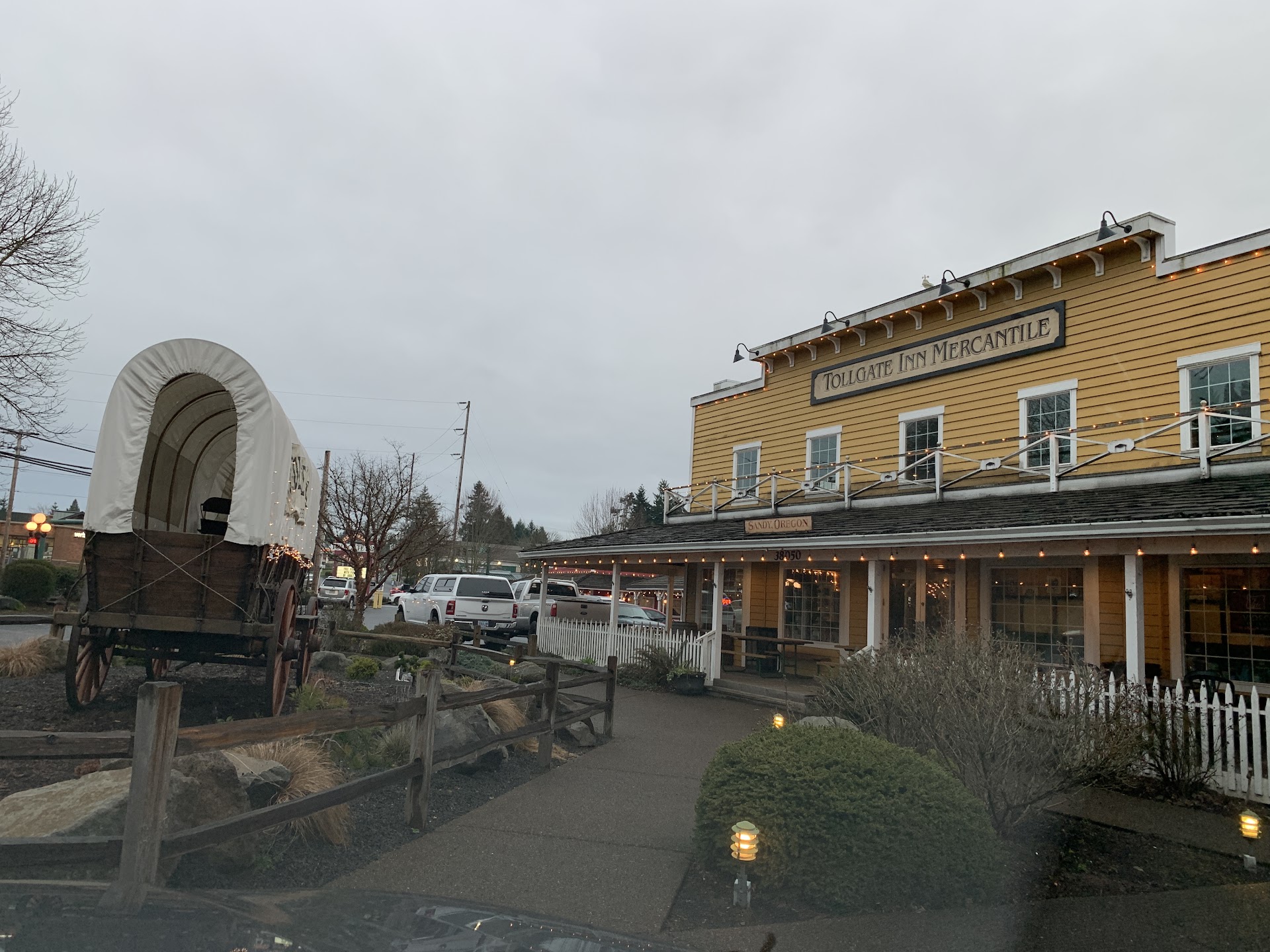 My friend and I dawned in our masks swung open the double doors and entered two Mike's saloon give me a beer and out from behind the bar came the cutest, happiest little gal. I looked around the saloon it was nice clean place and people were laughing and drinking and playing poker (video) as we mosied up to the bar I said can I get chicken strips my friend will have a club house and onion rings and here came the biggest strips as big as my hand and a sandwich a mile high and crispy delicious onion rings. Ride on into sandy oregon to two Mike's saloon. Stop by their bakery for to die...