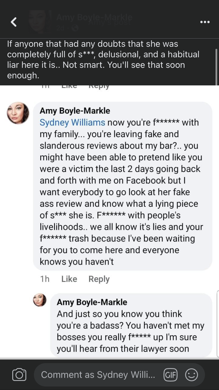 Since google doesn't allow business owners to remove fake, slander reviews i just would like to let you know sydney williams. We all know your review is fake. You have been posting non stop harassment on my facebook over someone that had nothing to do with me. You have been stalking me for days and now you're leaving the same fake review on all platforms. You would have actually had to been here to leave a review. And you can be sued for slander of a business. As well as stalking. As for the personal Facebook posts you posted, you forgot to post the beginning part for 2 days of you stalking and harassing me, a person whom you don't even know all of my friends, and fake reviews of my business. All you have done is proven that none of this has any Merit. You do not know me and your reviews are false as is your claim to have been here so thank you for proving that and now there will be no more responses to anything you post because you all you have done is proven my point the next step is papers served to you first slander and defamation of a business. Thank you...