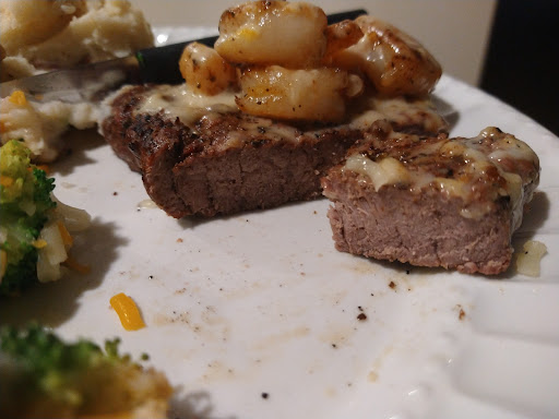 Read moreSanford, NC Sit down. This is a long review. Worst restaurant experience that I can remember ever having. We were a party of 10. Our tables were in a narrow area (wall one one side, walkin area on the other). People were coming and going, bumping our backs much of the whole time. Server was not familiar with the menu. We had the 2 for $25.00. We ordered up from 6 oz. to 8 oz. $2.00 for each was reasonable. With the 2 for $25.00, you got 2 sides or 1 appetizer. We went with 2 sides and added an appetizer. Appetizer came. We had the boneless B.B.Q. wings. They were cooked to death. Hubby and I tried one apiece. Set the others aside. We both wanted salads and baked potatoes. We we're told all vegetables had been recalled. I had heard about romaine lettuce, but not all vegetables. Also, apparently they do not sell baked potatoes, at all?! Who sells steaks and not have baked potatoes for a side?! So hubby ordered fries and the 4 cheese macaroni. I settled for roasted potatoes and 4 cheese macaroni. I asked kindly could I have a small portion of spinach and artichoke dip, which they said they had ( remember all vegetables had been pulled)... I did not want 2 carb sides. That was a no! The food did come in a decent amount of time. The steaks were a small clump of beef, overcooked and around the edges were burnt. We ordered our steaks medium. The 4 cheese macaroni had been cooked and was dried out. The roasted potatoes weren't eatable. They looked like small charcoal bricks. I asked if a roll or slice of garlic bread came with the meal. It didn't but she was nice enough to bring us 3 garlic bread sticks. So we do not intend to ever go back. Don't...