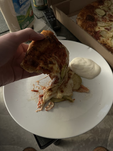 Way too much bread and have skimped the toppings. For example in a full calzone there was a total of 7 small pieces of pepperoni, not even full pieces, some were cut in half. Yet they put an ACTUAL FULL CUP AND A HALF OF OLIVES ON IT. Yes, I measured, yes, I opened the food up to see why it's completely different than my...