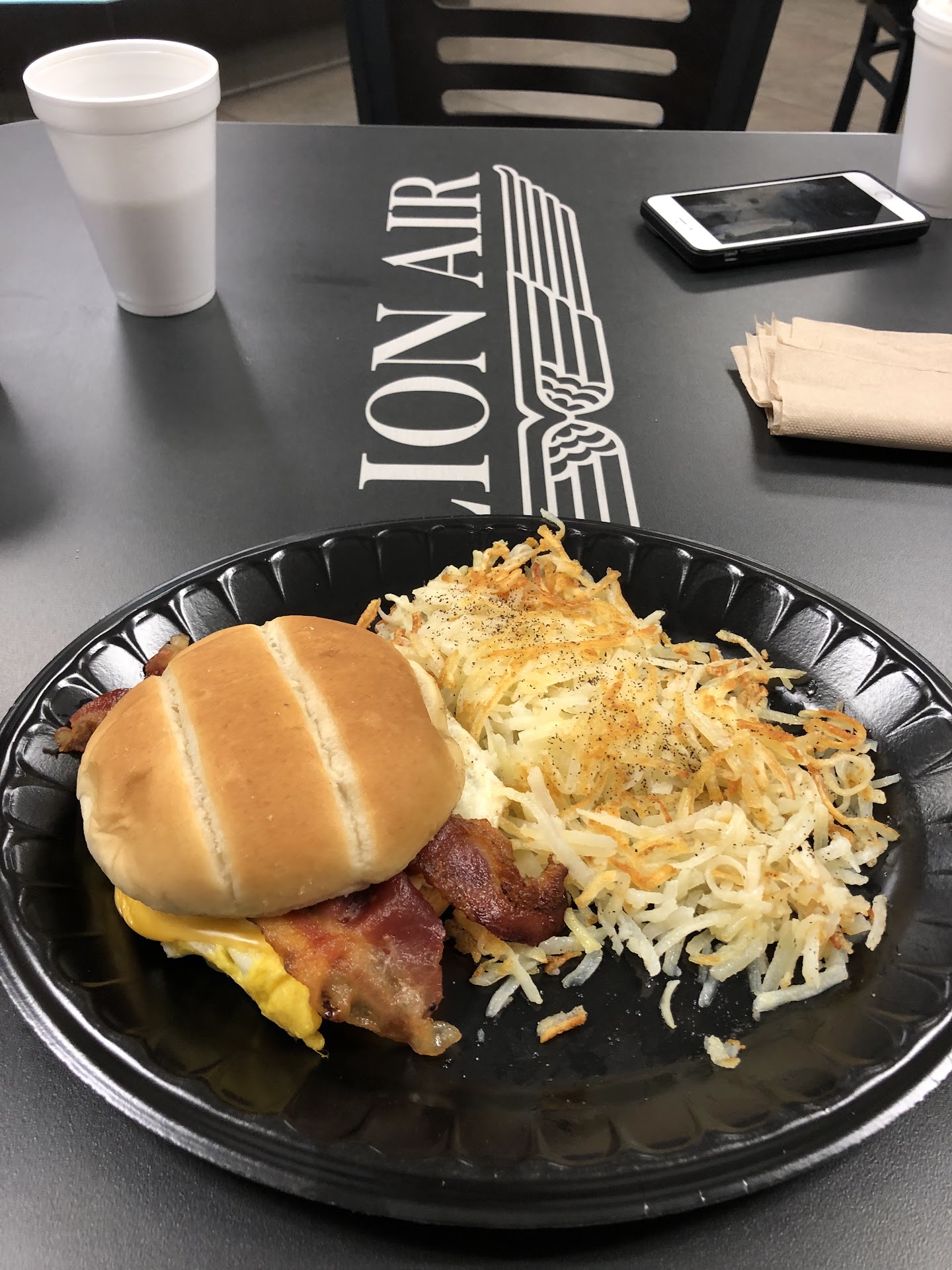 This was a great hidden gem we found what for a flight at the airport. They are located outside of the main airport. But in the “private” flights area. Million Air. Easy to find if you google it for sure. We were very impressed with the great breakfast we had. Had a breakfast burrito and a breakfast sandwich both came with side of hash browns. Everything was hot and fresh! Chef was super nice to us. They also do catering. Definitely would recommend this tucked away spot. Sorry no pics,...