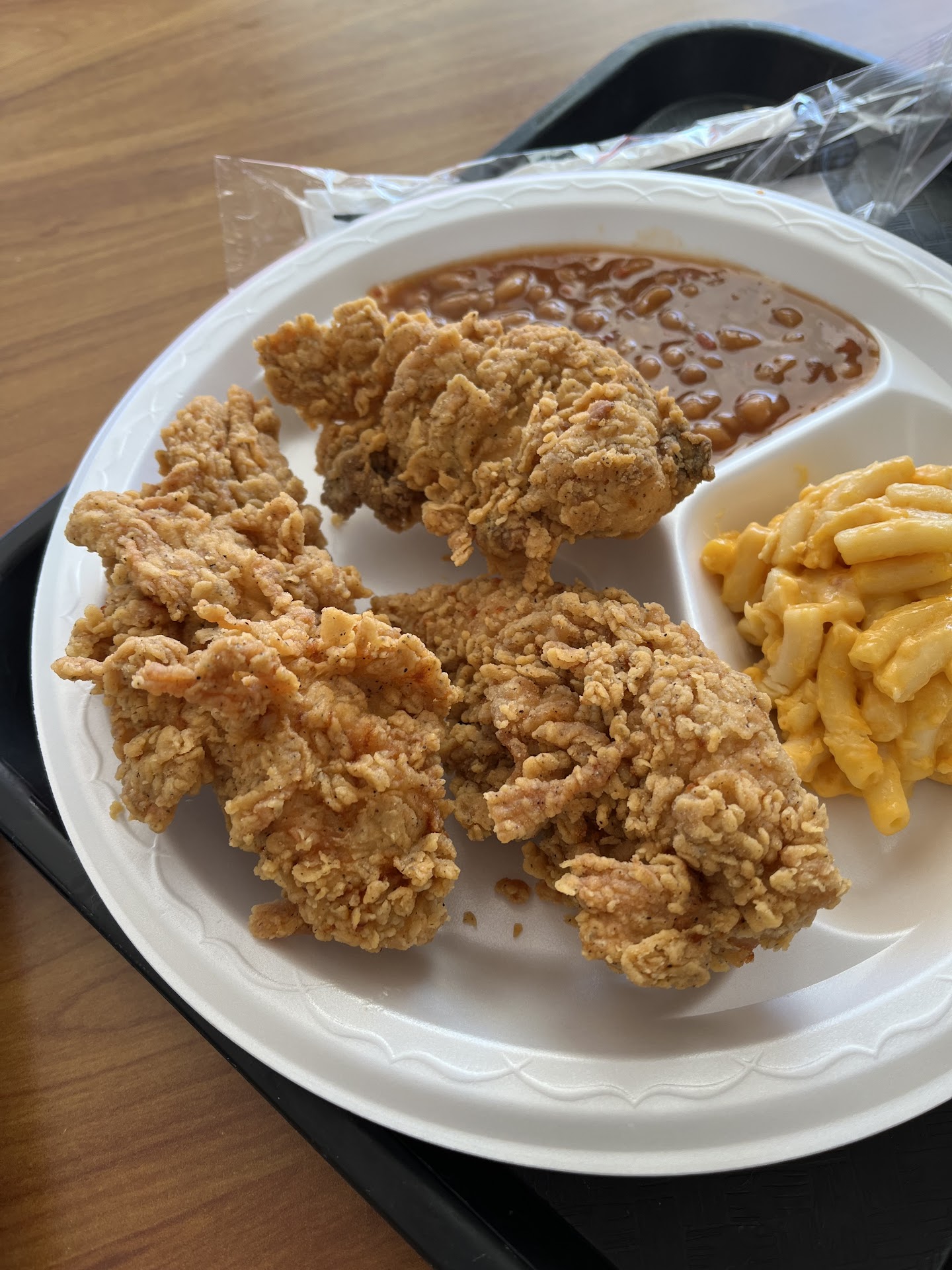 We ordered an 8-piece meal with three sides: mac and cheese, mashed potatoes, and beans, along with an extra piece of a spicy breast. The chicken was the highlightâcrispy, well-seasoned, and flavorful, although the size of the pieces left something to be desired. For the price point, I expected meatier pieces.