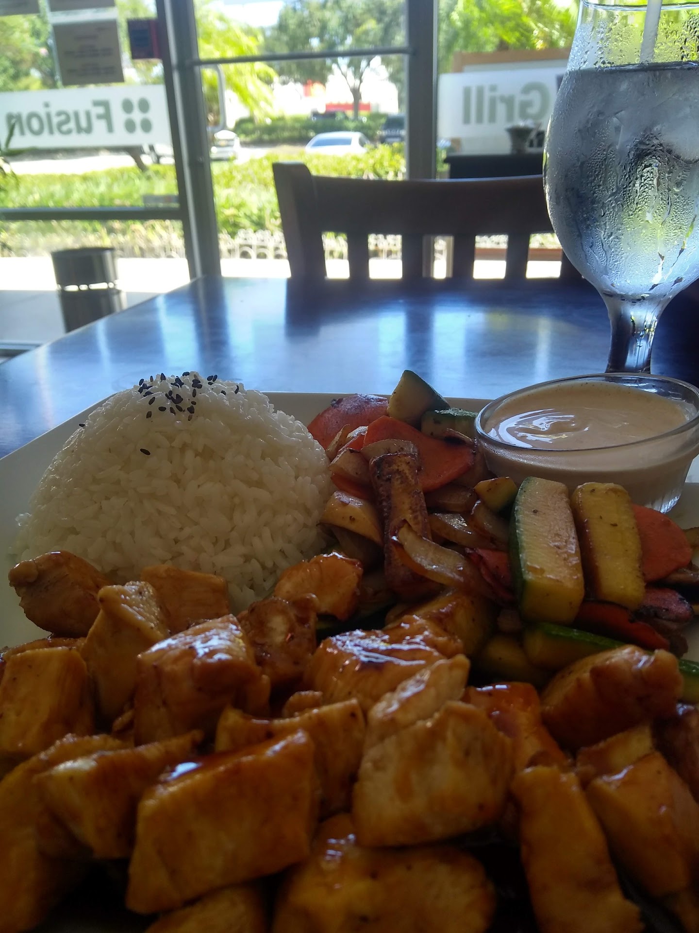 However, as the chef reminded us, “the dish was already made.” As a 1-time courtesy, the chef agreed to the substitution-for an additional charge. He added 6 additional thin slices of fish to my plate, . The “salad” consisted the equivalency of one, tablespoon of veggies (a small, diced mixture of; avocados, cucumbers, carrots, seaweed & tomatoes).