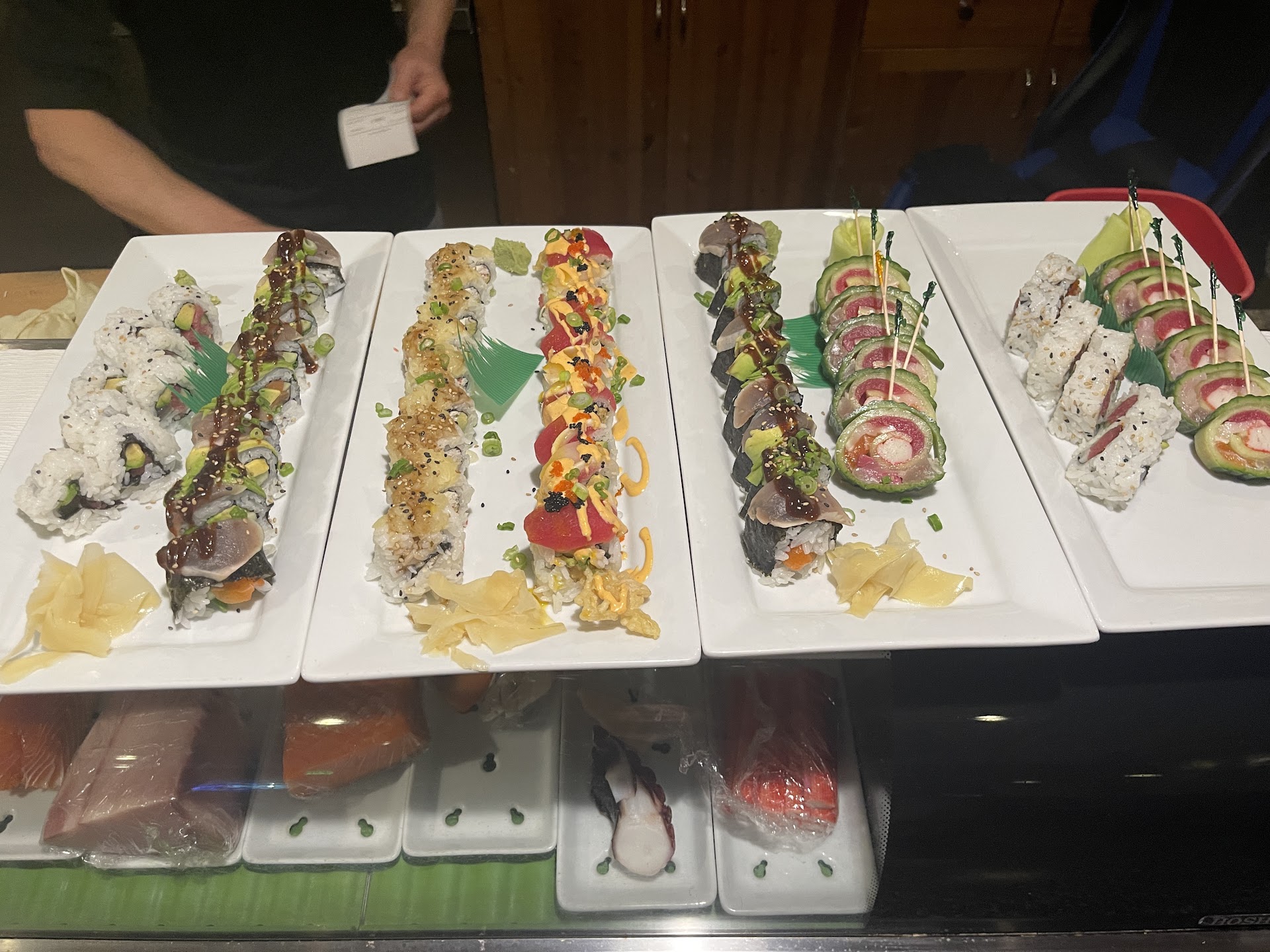 The sushi bar chef made a small platter of 8, fairly thinly-sliced pieces of fish (2 slices of each fish)- a small amount food for an entree, I asked the sushi chef if he had substituted the 3 fishes that I did not wan included. To my surprise the chef became argumentative & stated that he “can illuminate, but does not substitute”... Had I have been made aware of this policy earlier, I would have ordered something different from the menu.
