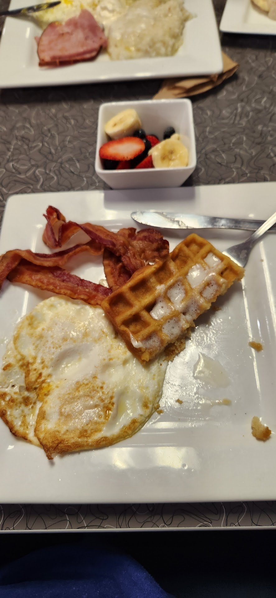 YUP‼️ This is a definite return! This was our first visit to the diner, and OH BOY, I'm happy we stopped in!! As we walked in, Adrianna greeted us warmly and let us know she was cleaning a table for us to be seated. The seating was less than a minute, and fresh coffee was on the table very soon after. Cameron or "Cam" as she likes to be called, with her high-spirited bubbly personality, was quick to help Adrianna with our table and took our order with great suggestions and answers to questions from the menu. I chose waffles, eggs, and bacon with a fresh fruit cup on the side. The waffles were light Ave fluffy and didn't even need syrup! The eggs were perfectly cooked to my liking, and the bacon was crisp and not dripping in grease, so it didn't kill the flavor of the bacon. My fruit cup was fresh strawberries, sliced bananas, and blueberries. The fruit was crisp and sweet, which made me pick my spoon up and scoop the cup as opposed to picking it up with the fork. Our other meal was the biscuits and gravy with eggs and ham. The biscuits were fluffy and not too flaky. Again, the eggs were cooked to perfection, and the ham was tender. We thought that maybe there could be an option for honey baked, but the meal was very good without it. The chef, as well as Patrick, who is the owner, stopped by our table to greet us and welcome us in. He shared some history of this restaurant and the other that he owns (that will be our next eatery) and thanked us again for choosing Mel's Diner. If you've never been for a visit, you are missing out on a gem! It's located in a good location and should now pick up the traffic from "The Patio Diner" which is about 2 miles away, since they are now closed. The restaurant was clean and smelled fresh, and the bathrooms were tidy and stocked with the necessary toiletries.