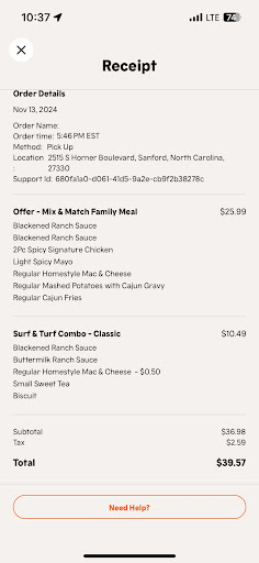 Now for the 2nd best part, the chicken, tenders, nuggets, and biscuits were so damn good and fresh that we went back again for another family meal. Now me and my family have been eating KFC/Bojangles for sometime now, but Popeyes was the game changer for us. No one makes their chicken juicer and tender like popeyes for us, we have a new place to go to now for the best chicken! Thank you everyone at Popeyes @ Sandford!