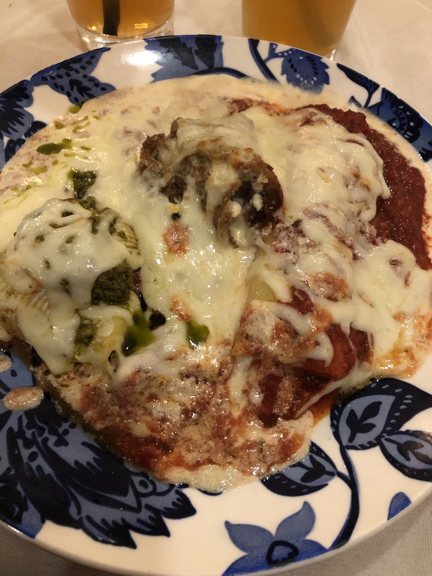 Table had Trip to Italy (stuffed shell, stuffed manicotti, and a eggplant rollatini), and stuffed manicotti with Alfredo sauce. All was delicious. The table preferred the white sauces to the red. Food has a home cooked feel to it and so felt a little pricey for what you got. The portions were large, and the taste was there. Best part of the meal.