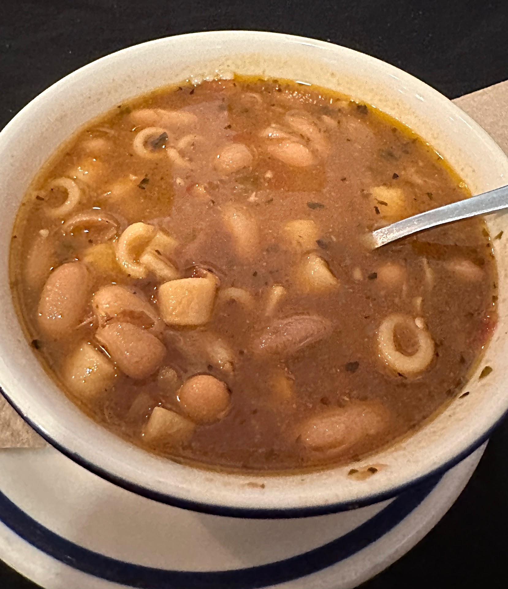 Soup was flavorful with a rich broth. Salad one of our table members had was fresh and looked good. Attentive waiter, kept the drink refills coming. The garlic bread we ordered as an app, was nothing to write home about.