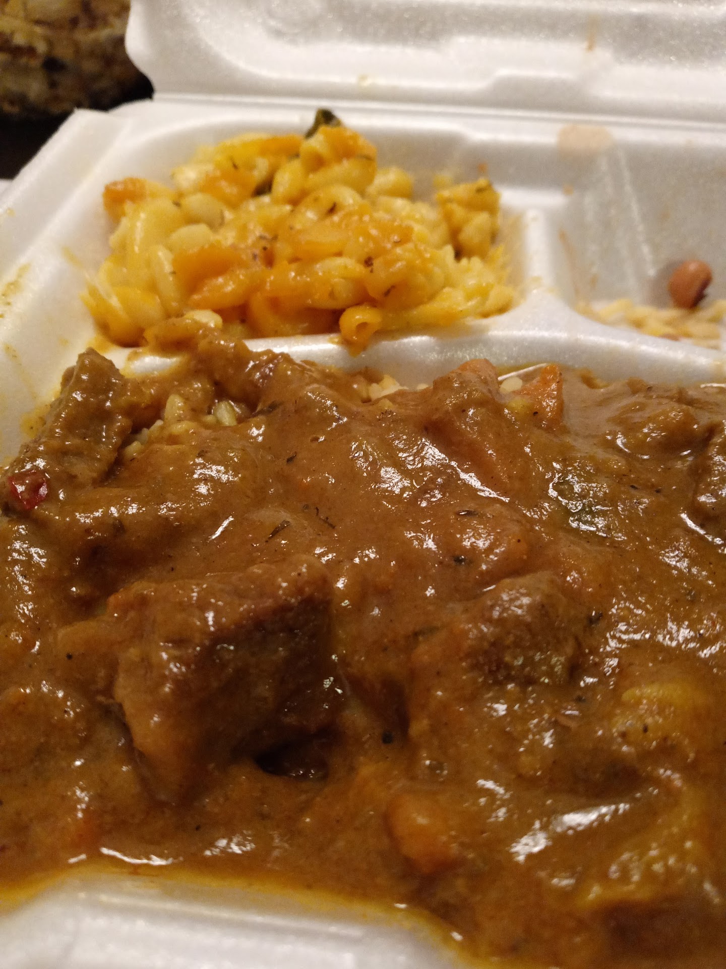 As for our meals, the smothered turkey wing was outstanding. The fries wonderfully burnt. The green beans and cornbread was ok. My wife absolutely loved the shrimp and grits. As a bonus we were given banana bread pudding and peach rum cake. Both sugar-laddenly scrumptious.