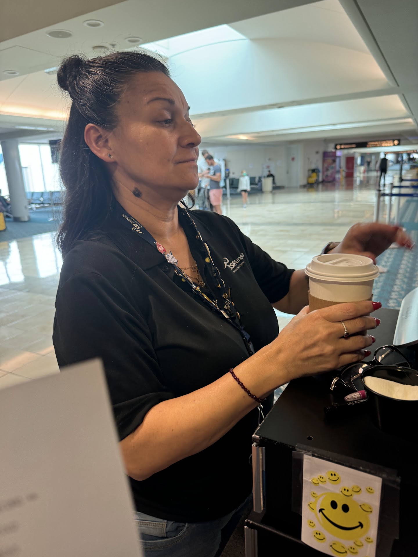 Read moreWe were in a long layover and decided to grab a bite and a drink. Bacon cheeseburger $19.49, chicken sandwich $19.49 (both came with chips, a rum and diet coke and an amaretto and diet Coke. Total $80.21. Food was good, drinks were a double. Waitress was great. Just a bit pricey. But it's the airport, not like you can go anywhere else, once you are already...