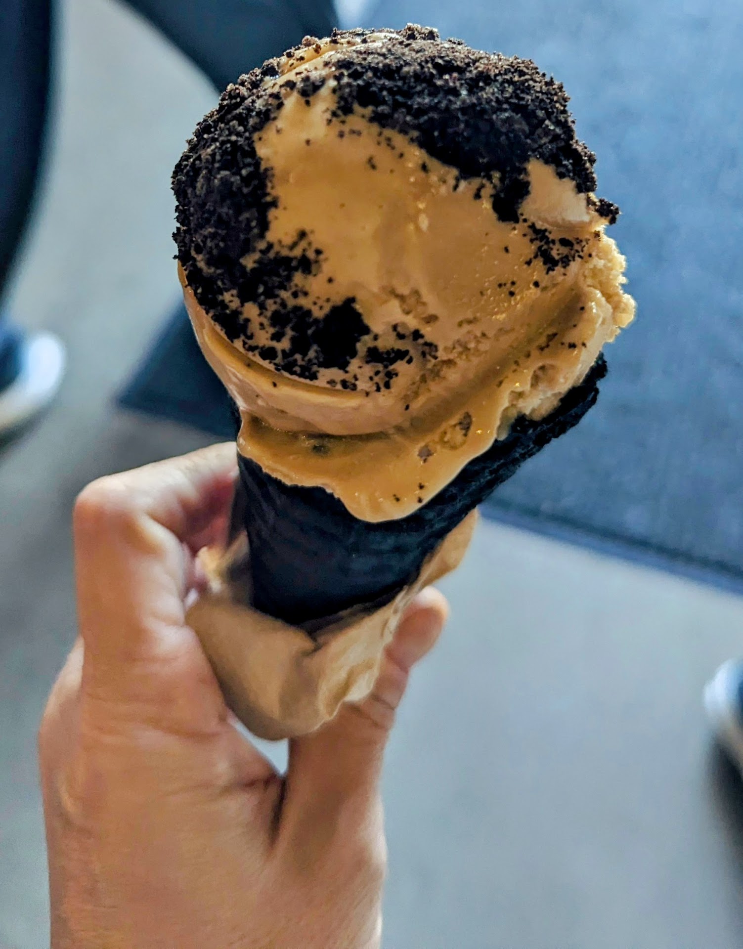 Read moreThank you for making an ice cream I can enjoy! So many non-dairy ice creams try to be good, but they fall way short, especially now comparing them to yours. Your coconut milk ice cream is everything I've been missing. It has a creamy texture, no weird after taste, and you have flavors other than fruit. I had the brown sugar espresso ice cream in the black chia waffle cone with crumbled Oreos. It tasted like my favorite coffee shop drink. The cone was amazing - so much more than just a vessel for the ice cream. It was an experience on its own. You can taste the chia seeds and it held strong the whole time I was eating my ice cream. I didn't get pictures but my husband got the coconut ash ice cream with an ube brownie. YUM!!! I saw somewhere they have ice cream cakes. The family has been given my birthday...