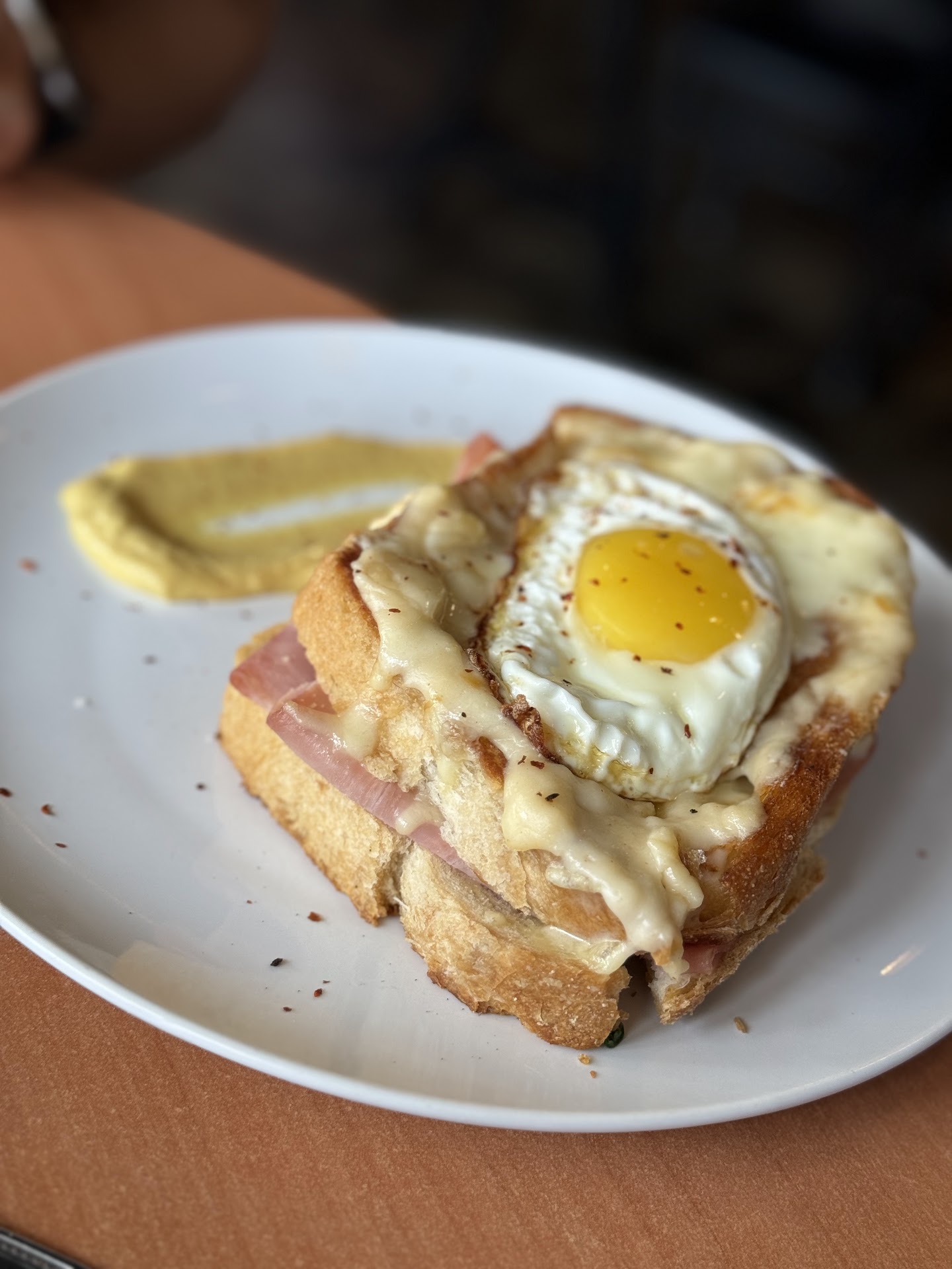 I was torn between the Southern Croque monsieur and the bacon egg and cheese biscuit. I ended up ordering the Croque monsieur, and just so happened they had made an extra Bacon egg and Cheese biscuit and gave it to us because she knew I had a hard time deciding. And after trying both, I think I would be just as torn deciding which to get next time because they were both delicious.