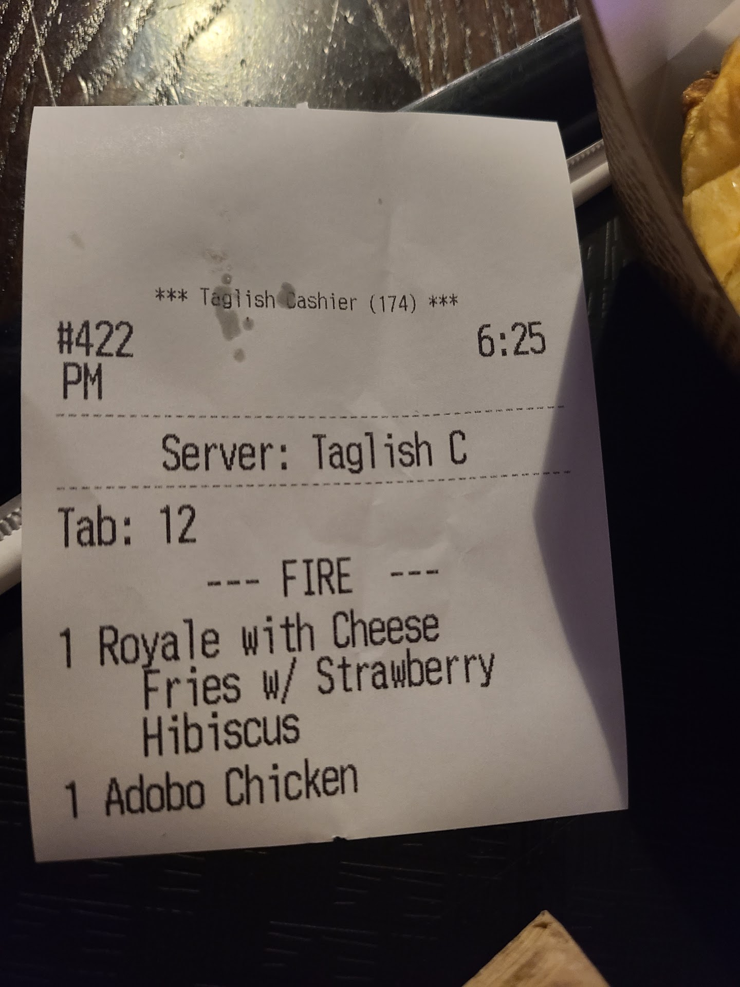 Fifth, the food was meh.