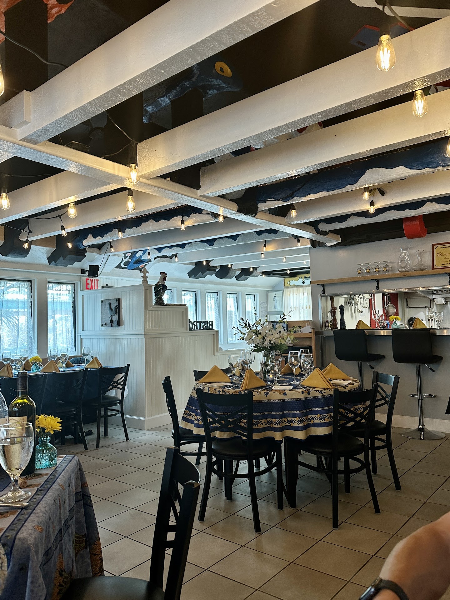 UPDATE Jan 2020- STILL GREAT! Love the atmosphere and ambiance; great wine! Jan 2018ânow 5 stars! Ambient, relaxed, cute bistro feel w blue, yellow and white linens. GREAT food now: beef bourguingnon DELICIOUS, tender beef w lots carrots. Chicken coq a vin also perfect as was the MOST delicious: sea bass with beurre blanc sauce. Salad dressing lovely,...