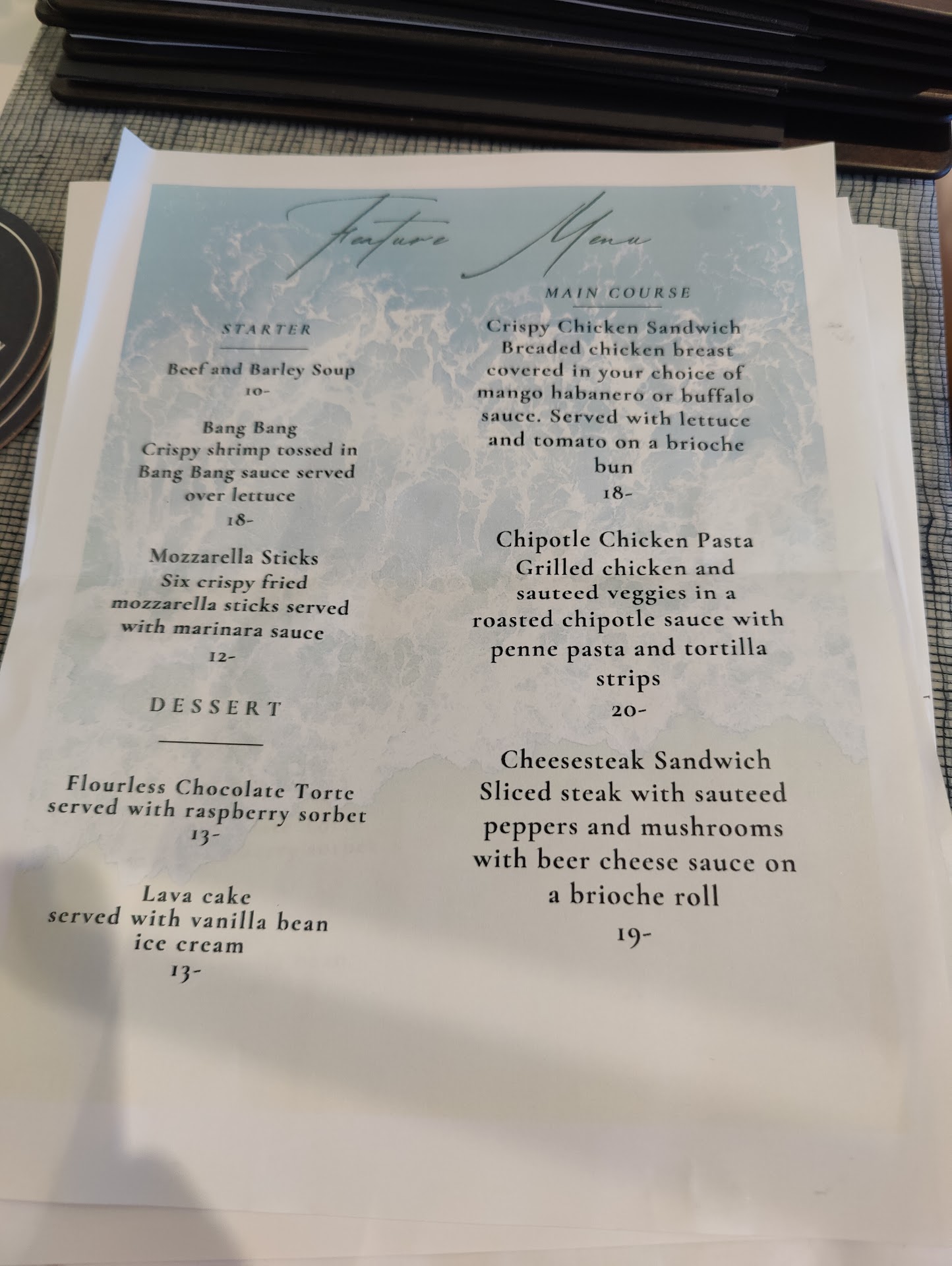 The pasta special was NOTHING like what we expected. It was actually kinda gross considering it advertised a "chipotle Chicken Pasta" that had zero spice and the "roasted chipotle sauce" tasted like a ton of sugar was added. The vegetables were a little sparse and so were all of the seasonings for the sauce. It was very tomato based.