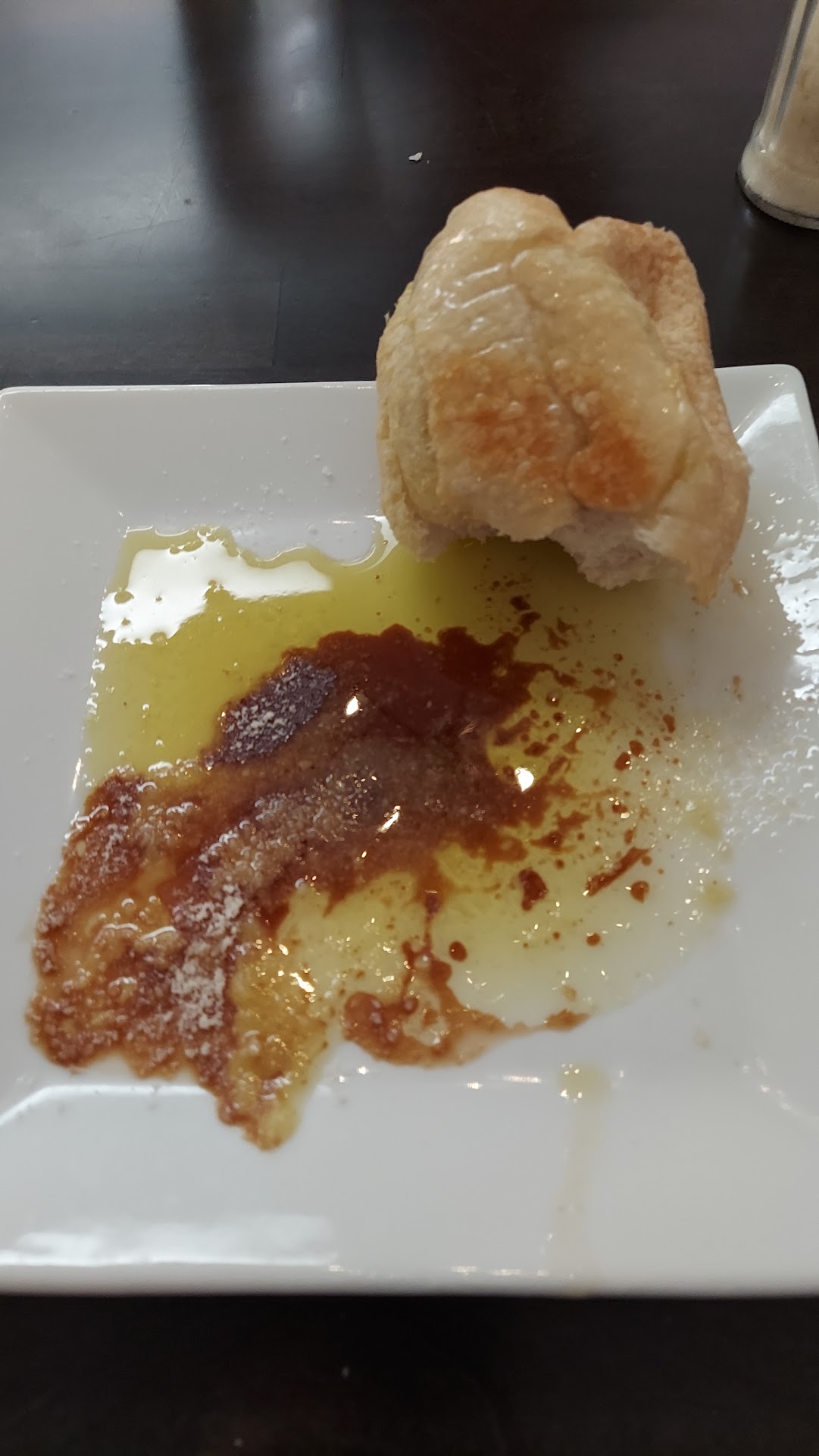 Complimentary Bread: Food Quality: 1 Very hard on the outside. Hard to tear. Doesn't compliment oils and parmesan very well. Food Quantity: 3.5 Adequate