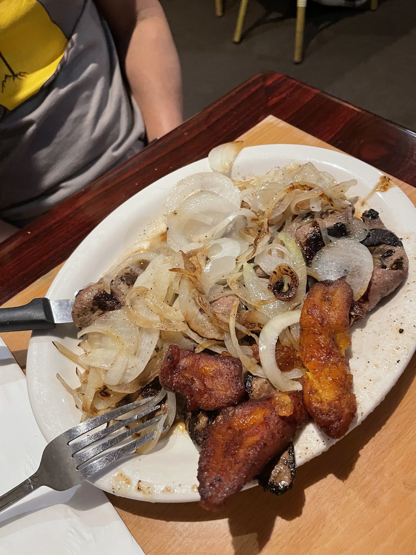 I am Cuban, and in my opinion, the food presented here as Cuban does not have the authentic flavor of our cuisine. For example, the pork needs a complete improvement; it seems more boiled than traditionally cooked. The beans have a very unpleasant taste, almost as if they were burned, and they don’t resemble the rich flavor of traditional Cuban beans. The rice is also not good: it’s sticky, served in excessive amounts, and neither the presentation nor the flavor is appealing.