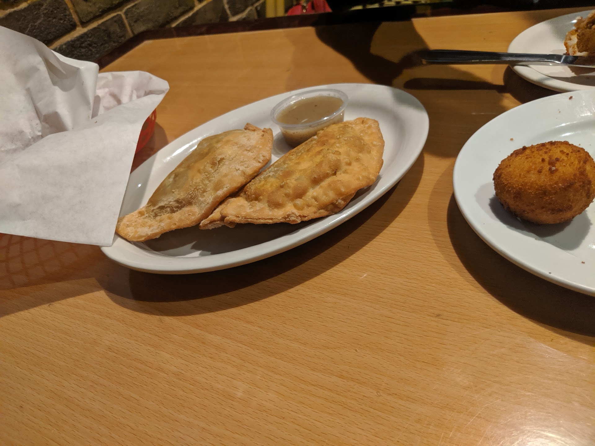 Chicken empanadas - My son loved these. They had great flavor, and a good amount of filling. The outside was crispy and light, not thick, but flaky. We ended up ordering another 2 more! 4 total!