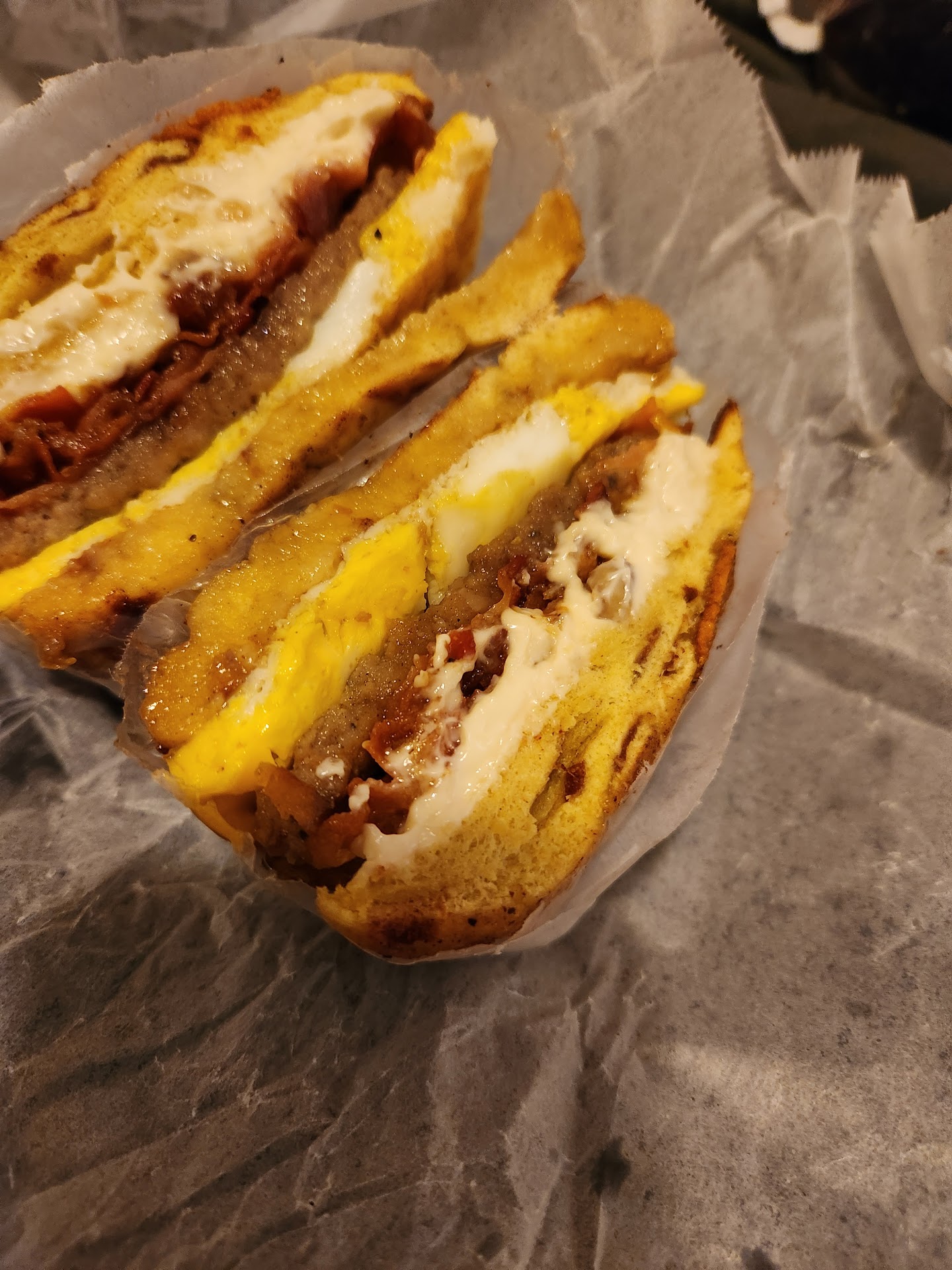Walked in and was greeted. Nice first impressions. Fast and friendly service, was in and out fairly quickly for having 5 people ahead of me. Food was great had the Vermonter, if your looking for a nice breakfast bagel for the sweet tooth we all have I would recommend it. Also if you like the classic bacon or sausage breakfast bagel I purchased one of those as well and also outstanding. I will be going back, however due to inflation it could get pricey when ordering multiple items....2 breakfast bagel sandwiches and two coffees came to $40 with tip. Along with a Blueberry muffin....some may say I'm cheap but I feel like the prices could be a bit lower. Honestly would probably drive more customers in as I would be willing to drive 10 min away for good food at slightly lower prices than most doughnut shops around here. Anyways would still recommend regardless, keep up the good work.