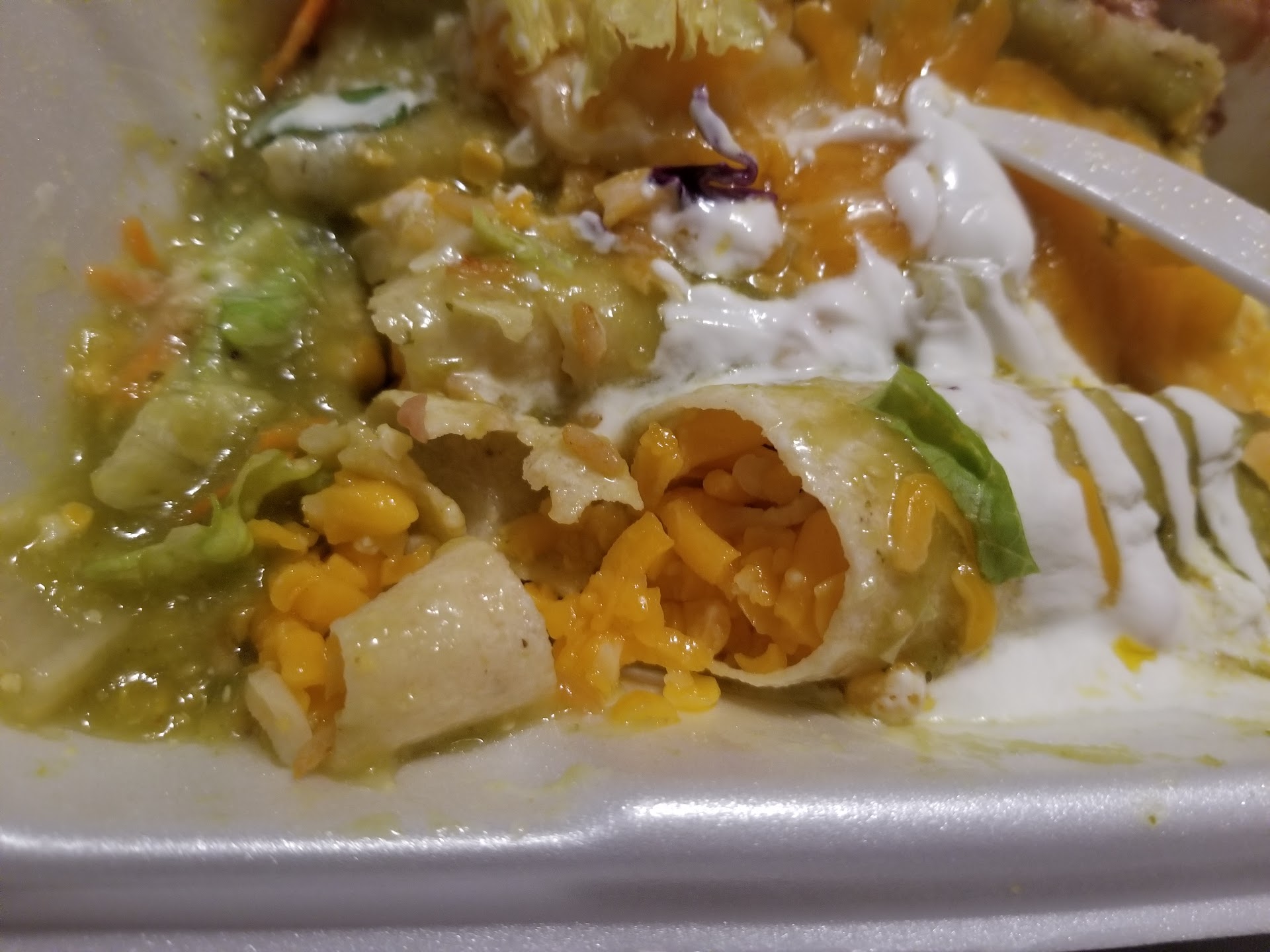 Wow. I've tried to come here several times and it's usually mediocre at best. Once they used I guess expired cheese.. (no idea why we ever tried this place again after that). I guess we had this "what if that's not the reason we got sick" doubt... Anywho so we go and we order 2 plates of cheese enchiladas.. one with green sauce, one with red. It takes forEVER. (Thisbis a drive thru by the way and not a busy night). They made us park and wait and it took at LEAST 20 minutes after waiting at the window for a few. It FINALLY comes, I get home and open my food and what do I get? Both green sauce. Oh gee okay well.. guess the hubby is having green sauce. Okay..