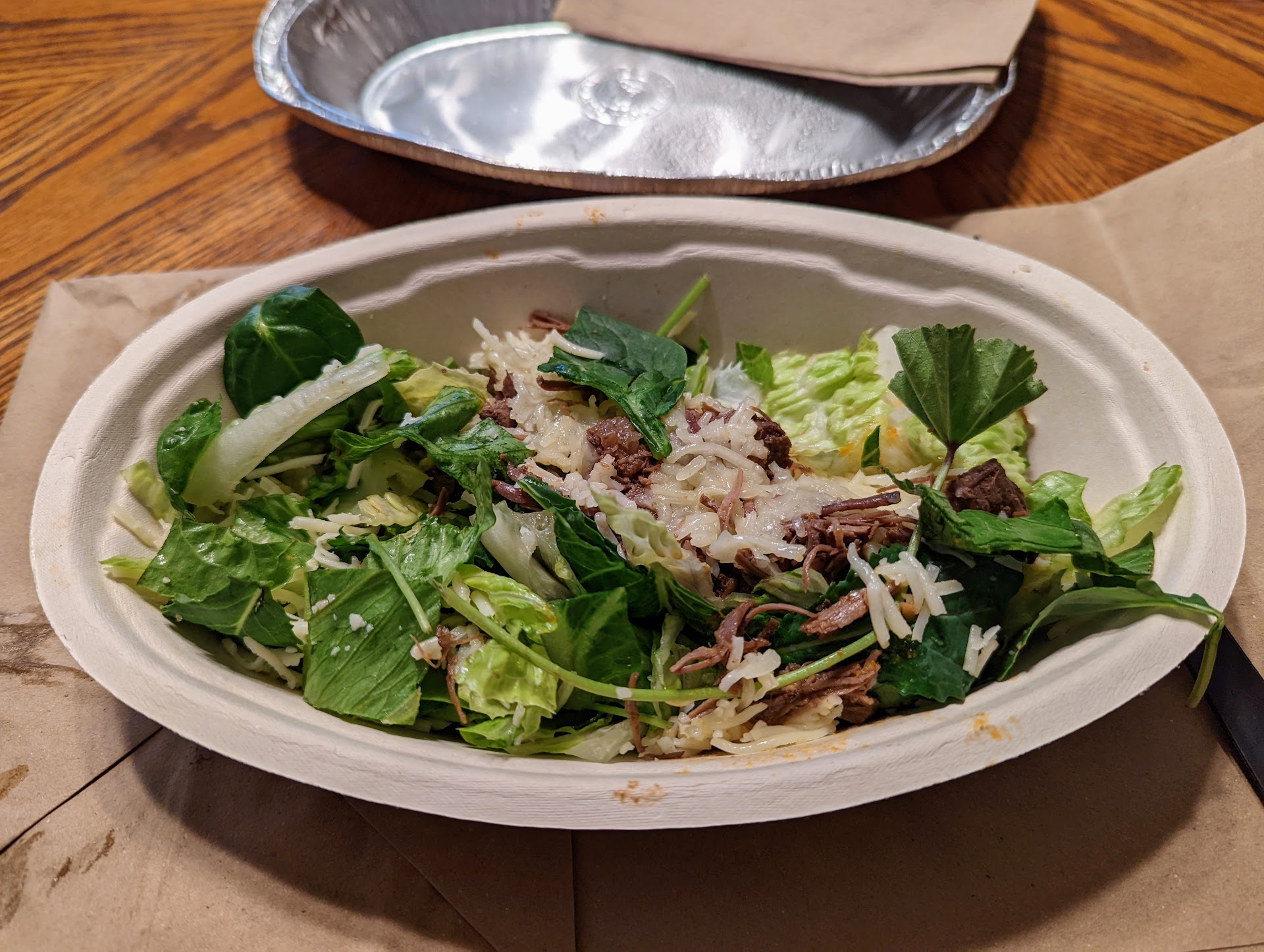 Ordered a bowl and asked for half chicken half steak. I got a mediocre amount on both and as I was saying something about it the next guy recognized it and added a little more chicken. I finished saying what I was saying and the guy took it the wrong way and barely put any salsas, cheese etc. I literally asked the guy to put more of the same salsa 3 times. I don’t know why didn’t walk out then but I should have. I ended up getting the portions I thought was normal but I had to keep asking for more like it was a game. These employees are way too entitled, time to clean house. I won’t be returning here, too much food in the area to deal with brats a corporate...