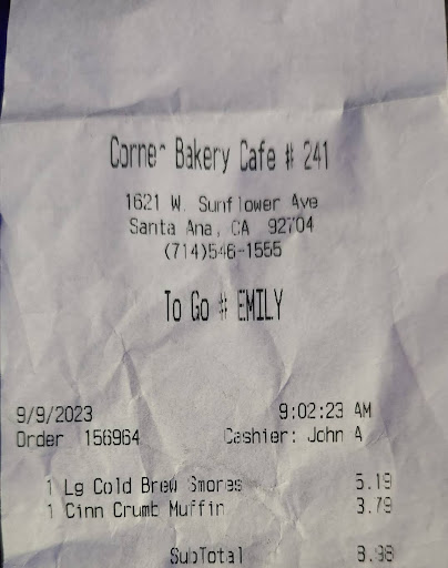 I brought my family here for breakfast on a Friday morning around 10am. The visit left much to be desired. I’ve always like corner bakery, so I had relatively high expectations since our experience is usually pretty great. That’s being said, this location needs a lot of help. First off, where’s the staff? When we walked in the only soul that could be found in the restaurant was the person taking orders. She was polite and communicated well. As I wrapped up my order and turned the corner to grab some coffee. That’s when I started noticing issues. Second point, about 90% of the tables were dirty. And I know in some of the shots you can see clear tables so I made it a point to take close ups of those tables and you can see they’re actually filthy. The coffee bar was ok but again, not clean. There were also no napkins. As I served my coffee, I noticed that 4 staffers were all on break on that little corner by the coffee bar. That’s just bad scheduling and no wonder nothing was being cleaned. As I went to sit down to drink my coffee, I noticed it wasn’t even hot. It was lukewarm at best. I went to serve myself a new one (different flavor) and same thing. I ended up not adding half and half so that the temperature of the coffee would stay relatively warm. My wife mentioned this to who we think was the manager and he got a girl on the coffee. Everyone just seemed aloof. When our food came, it was decent but not to the standard of other CB’s. My son’s fruit was clearly not fresh, the cantaloupe and watermelon clearly looked like they had been out for a while. My wife asked for a new cup and that one did look fresh so we were grateful for that. Really the best thing at this location are the sweet crisps. Overall this location is just not up to the standard of other CB’s I’ve been to. They need some strong leadership to turn this place around. We will not be coming back until then. If you’re looking for a similar option, I’d hop over to Panera on Bristol that place is always on point and not...
